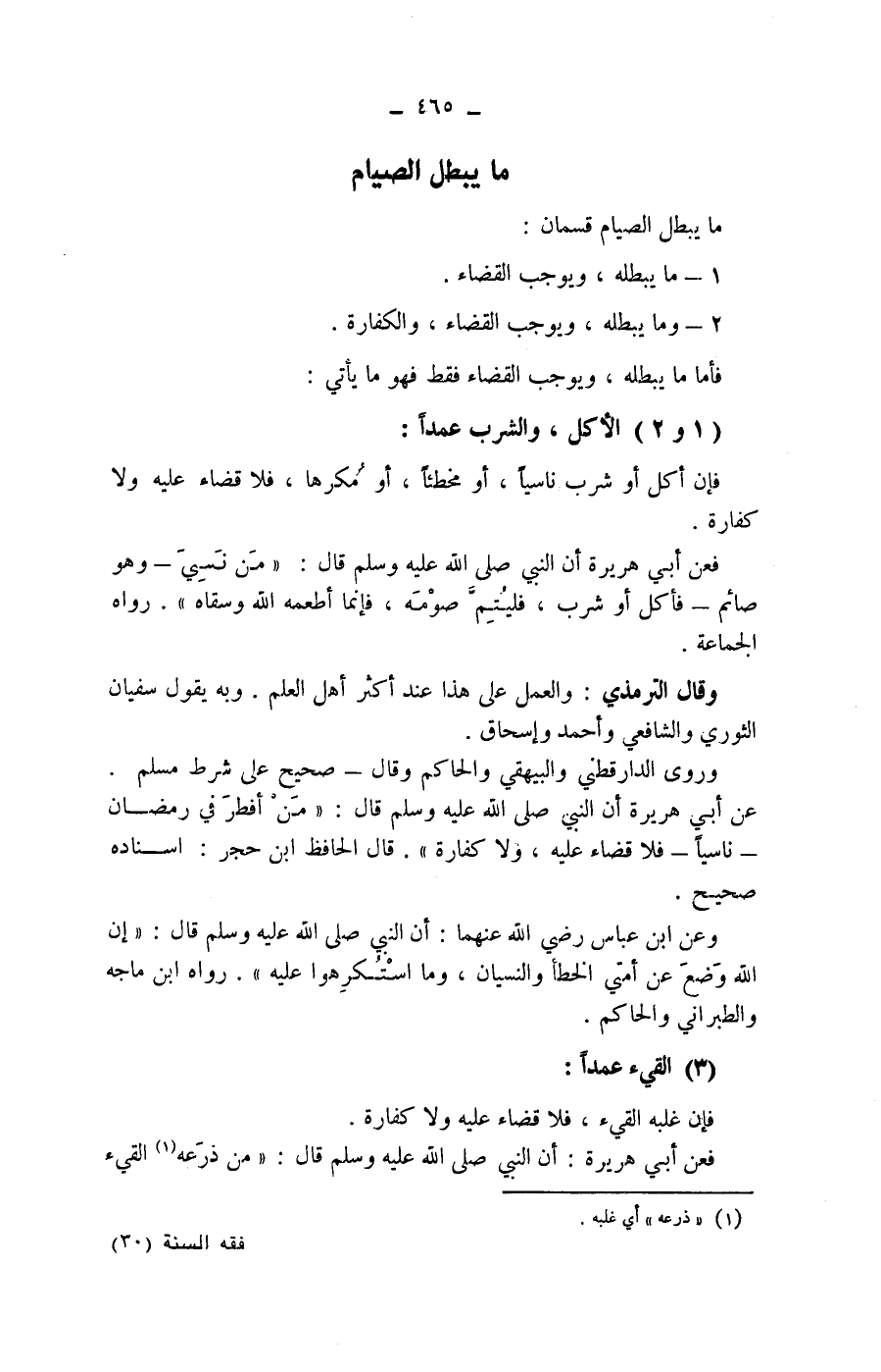 فعن أبي هريرة: أن النبي صلى الله عليه وسلم قال: " من ذرعه (1) القئ