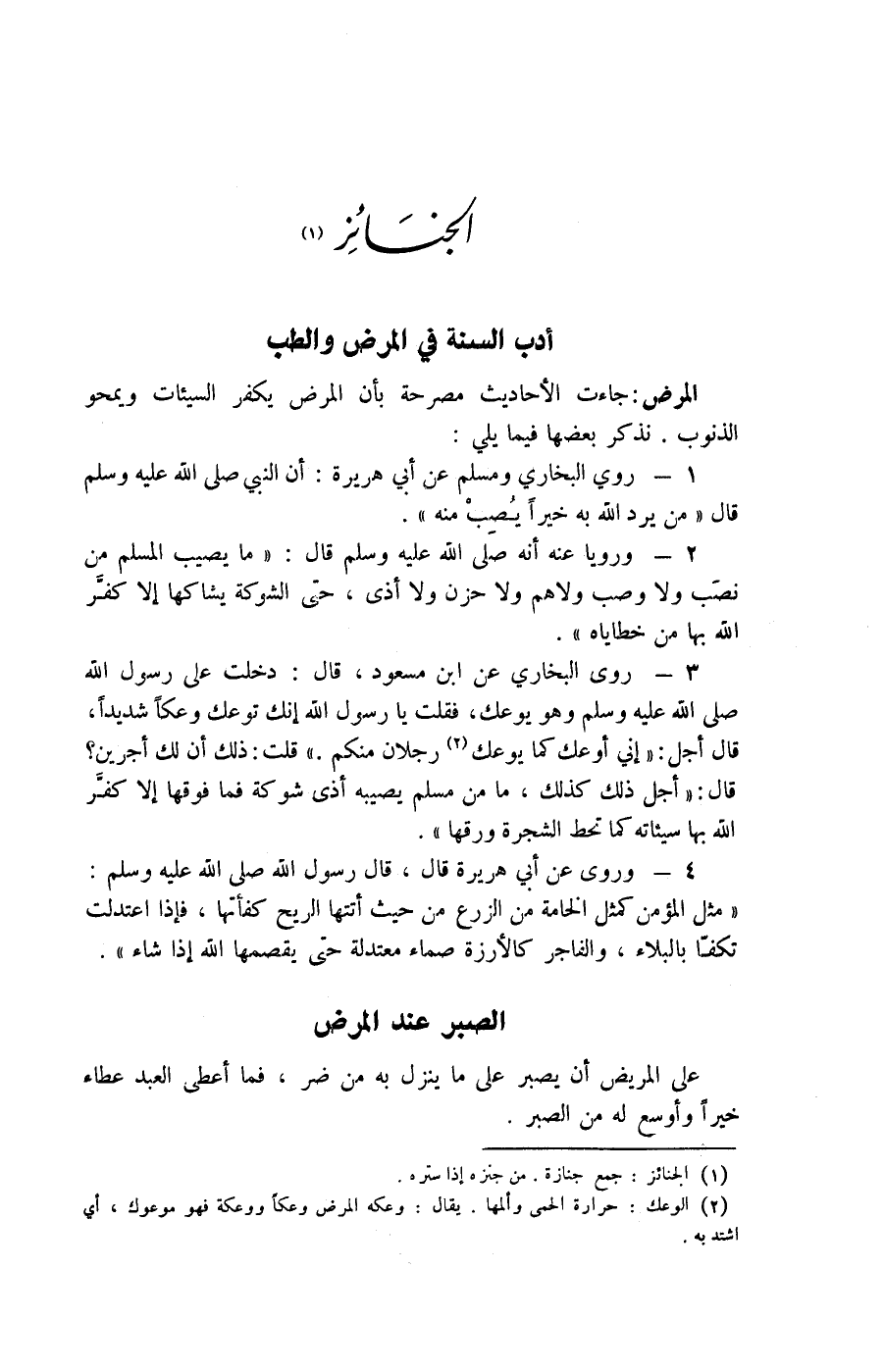 (1) أدب السنة في المرض والطب المرض: جاءت الاحاديث مصرحة بأن المرض يكفر السيئات ويمحو الذنوب.