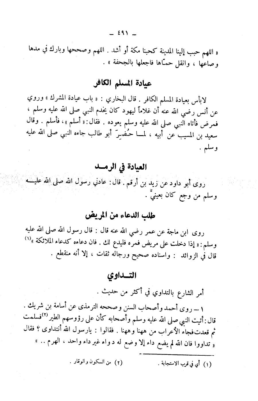 1 - روى أحمد وأصحاب السنن وصححه الترمذي عن أسامة بن شريك.