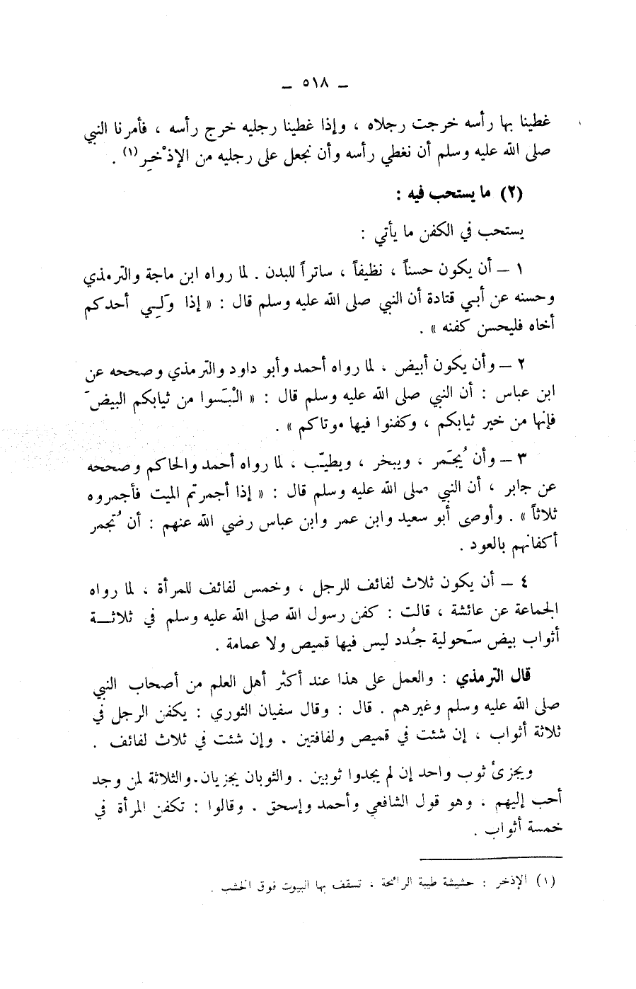 (2) ما يستحب فيه: يستحب في الكفن ما يأتي:
