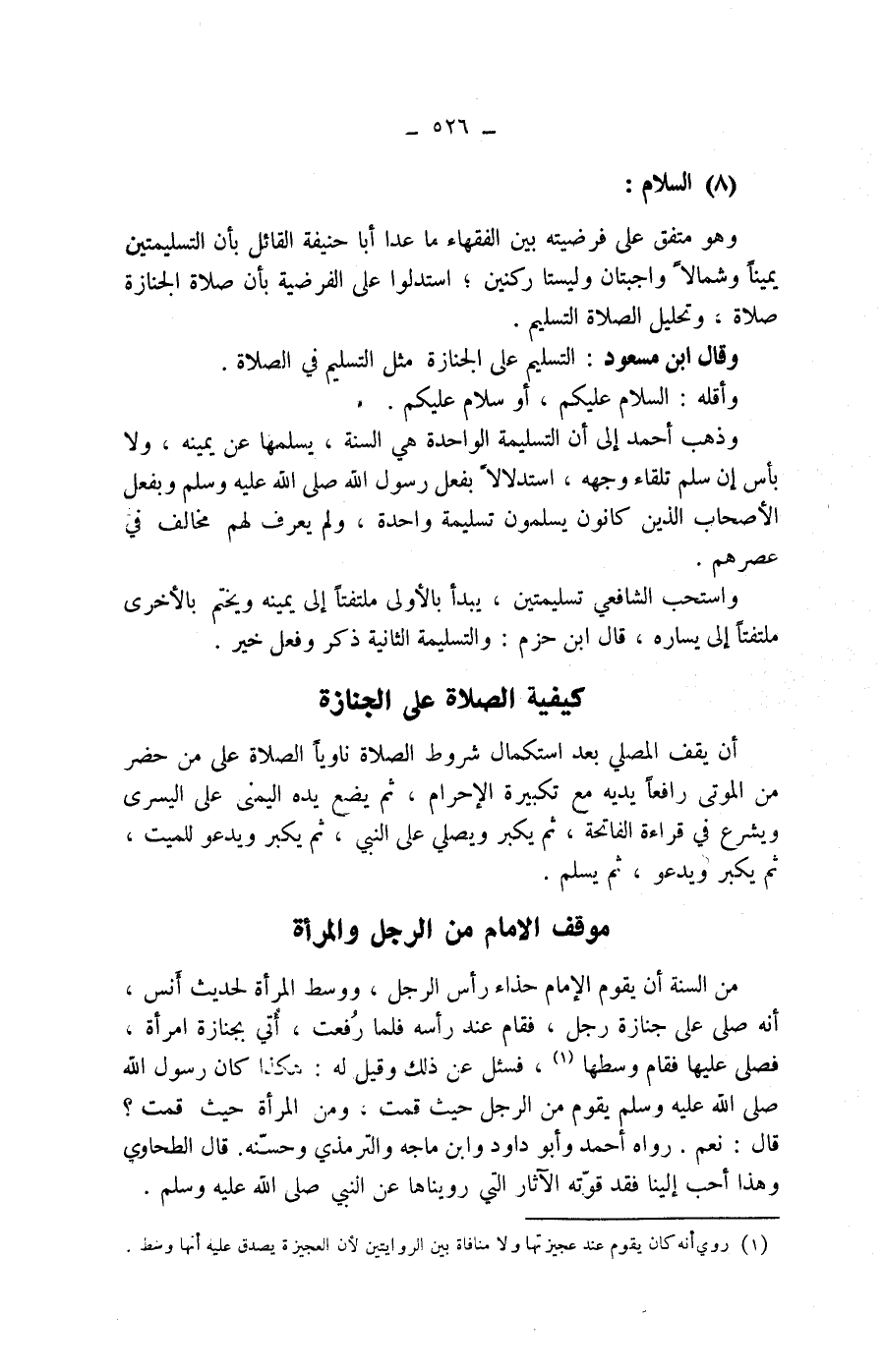 (8) السلام: وهو متفق على فرضيته بين الفقهاء ما عدا أبا حنيفة القائل بأن التسليمتين يمينا وشمالا واجبتان وليستا ركنين، استدلوا على الفرضية بأن صلاة الجنازة صلاة، وتحليل الصلاة التسليم.