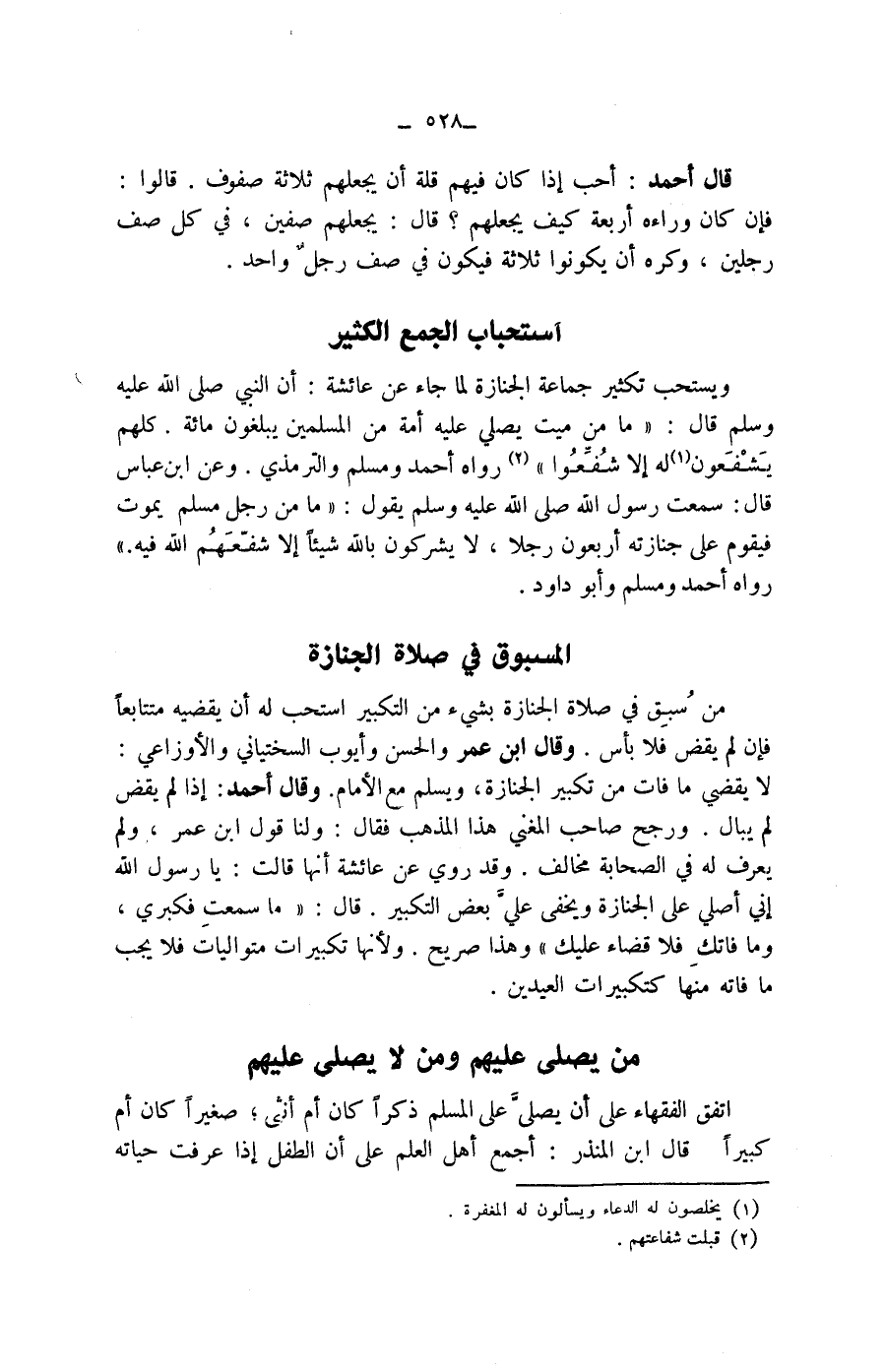 ويستحب تكثير جماعة الجنازة لما جاء عن عائشة: أن النبي صلى الله عليه وسلم قال: " ما من ميت يصلي عليه أمة من المسلمين يبلغون مائة. كلهم يشفعون (1) له إلا شفعوا " (2) رواه أحمد ومسلم والترمذي.