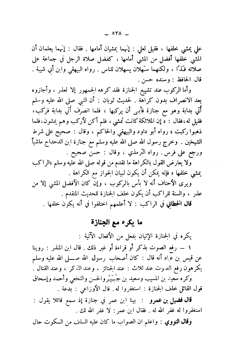 ولا يعارض القول بالكراهة ما تقدم من قوله صلى الله عليه وسلم " الراكب يمشي خلفها " فإنه يمكن أن يكون لبيان الجواز مع الكراهة.