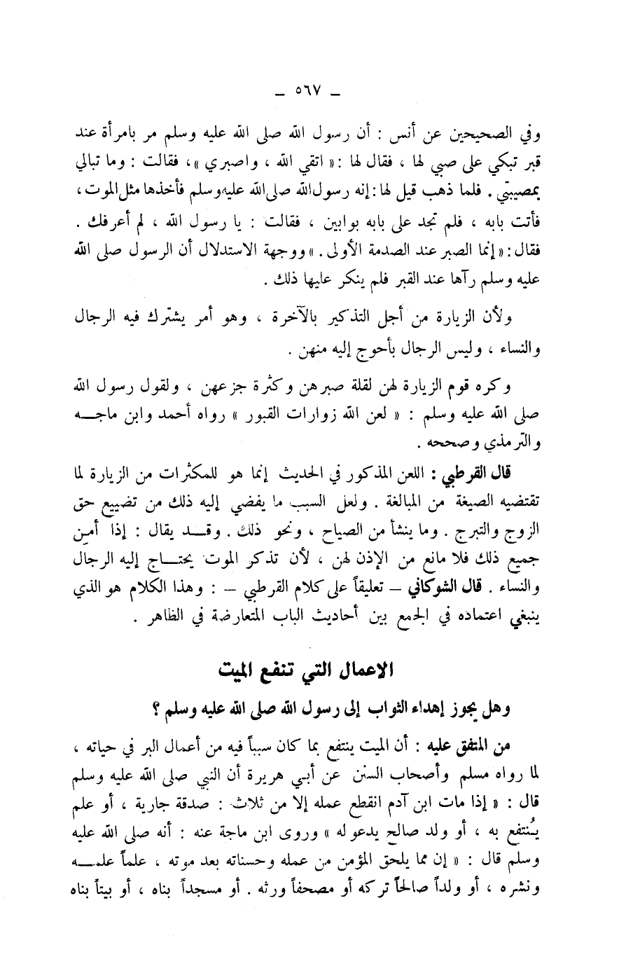 " ووجهة الاستدلال أن الرسول صلى الله عليه وسلم رآها عند القبر فلم ينكر عليها ذلك.