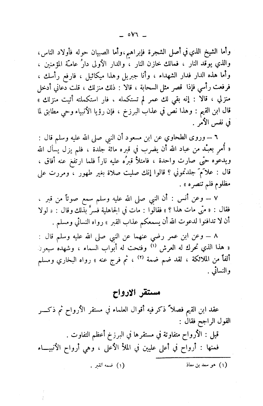 مستقر الارواح عقد ابن القيم فصلا ذكر فيه أقوال العلماء في مستقر الارواح ثم ذكر القول الراجح فقال: قيل: الارواح متفاوتة في مستقرها في البرزخ أعظم التفاوت.