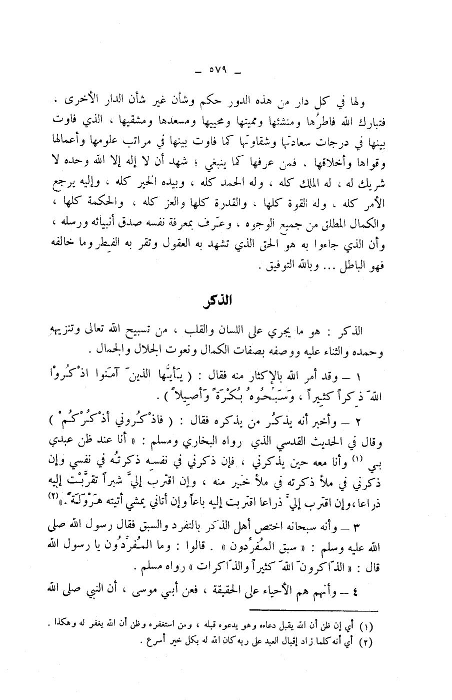 " (2) 3 - وأنه سبحانه اختص أهل الذكر بالتفرد والسبق فقال رسول الله صلى الله عليه وسلم: " سبق المفردون ".