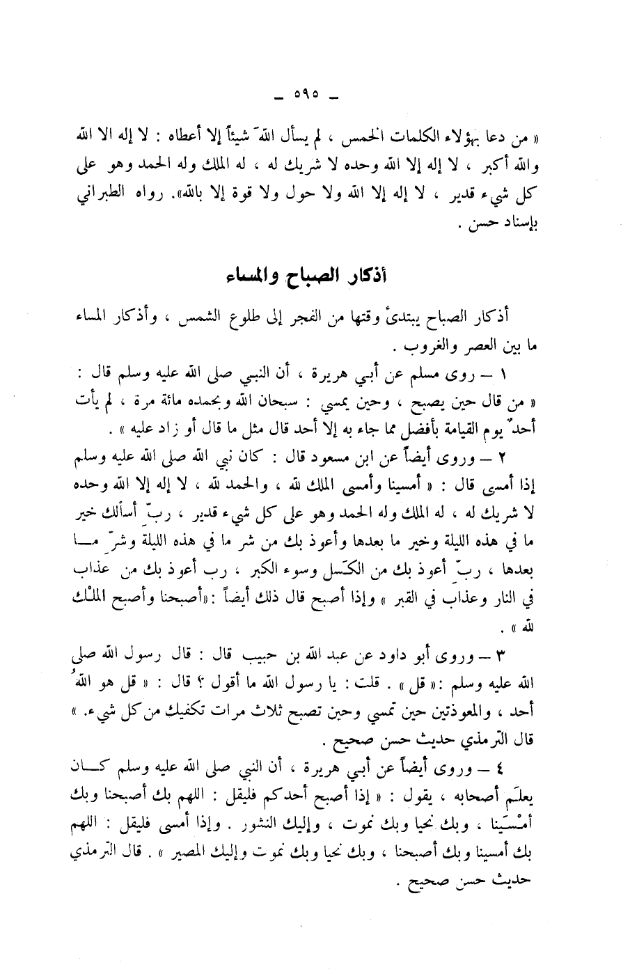1 - روى مسلم عن أبي هريرة، أن النبي صلى الله عليه وسلم قال: " من قال حين يصبح، وحين يمسي: سبحان الله وبحمده مائة مرة، لم يأت أحد يوم القيامة بأفضل مما جاء به إلا أحد قال مثل ما قال أو زاد عليه ".