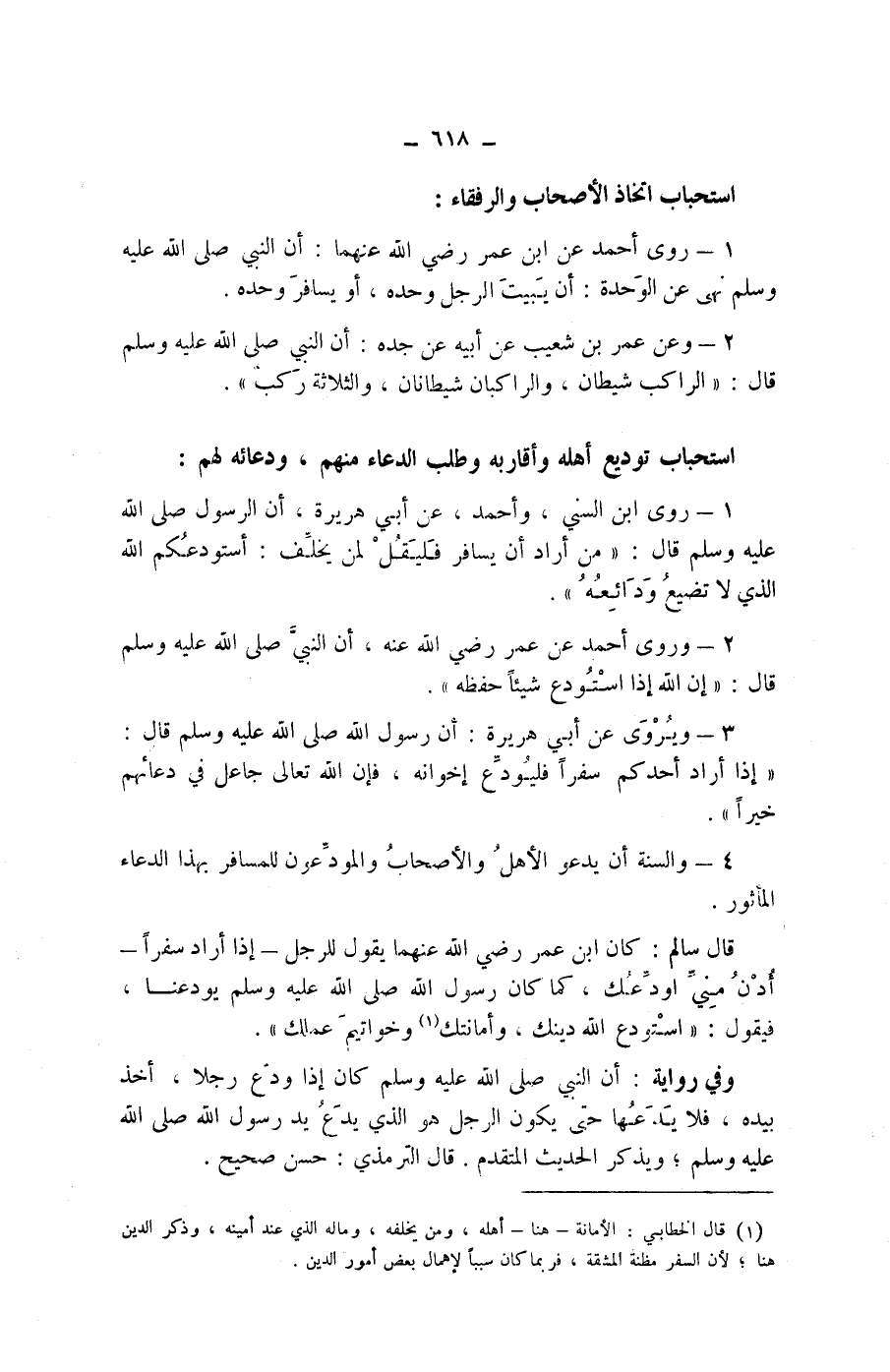 (1) قال الخطابي: الامانة - هنا - أهله، ومن يخلفه، وماله الذي عند أمينه، وذكر الدين هنا، لان السفر مظنة المشقة، فربما كان سببا لاهمال بعض أمور الدين.