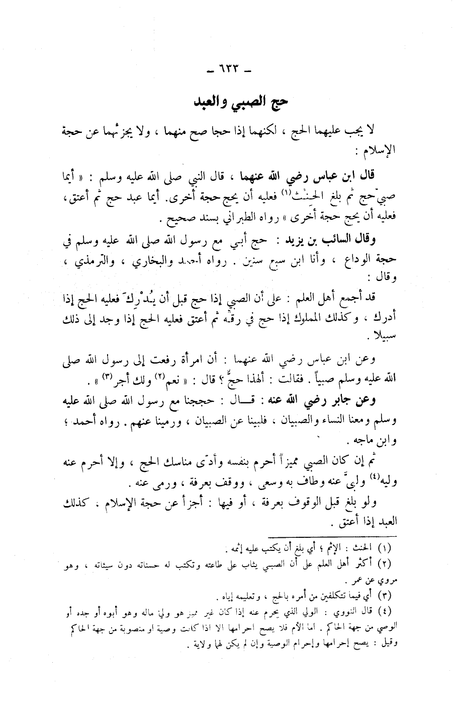 حج الصبي والعبد لا يجب عليهما الحج، لكنهما إذا حجا صح منهما، ولا يجزئهما عن حجة الاسلام: قال ابن عباس رضي الله عنهما، قال النبي صلى الله عليه وسلم: " أيما صبى حج ثم بلغ الحنث (1) فعليه أن يحج حجة أخرى.