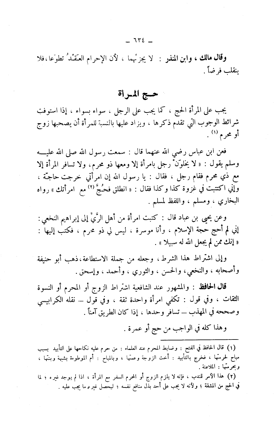 فعن ابن عباس رضي الله عنهما قال: سمعت رسول الله صلى الله عليه وسلم يقول: " لا يخلون رجل بامرأة إلا ومعها ذو محرم، ولا تسافر المرأة إلا مع ذي محرم فقام رجل، فقال: يا رسول الله إن امرأتي خرجت حاجة، وإني اكتتبت في غزوة وكذا وكذا فقال: " انطلق فحج (2) مع امرأتك " رواه البخاري ومسلم، واللفظ لمسلم.