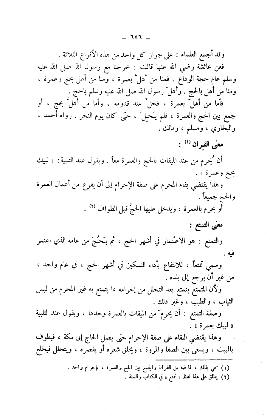 (2) يطلق على هذا لفظ " تمتع " في الكتاب والسنة.