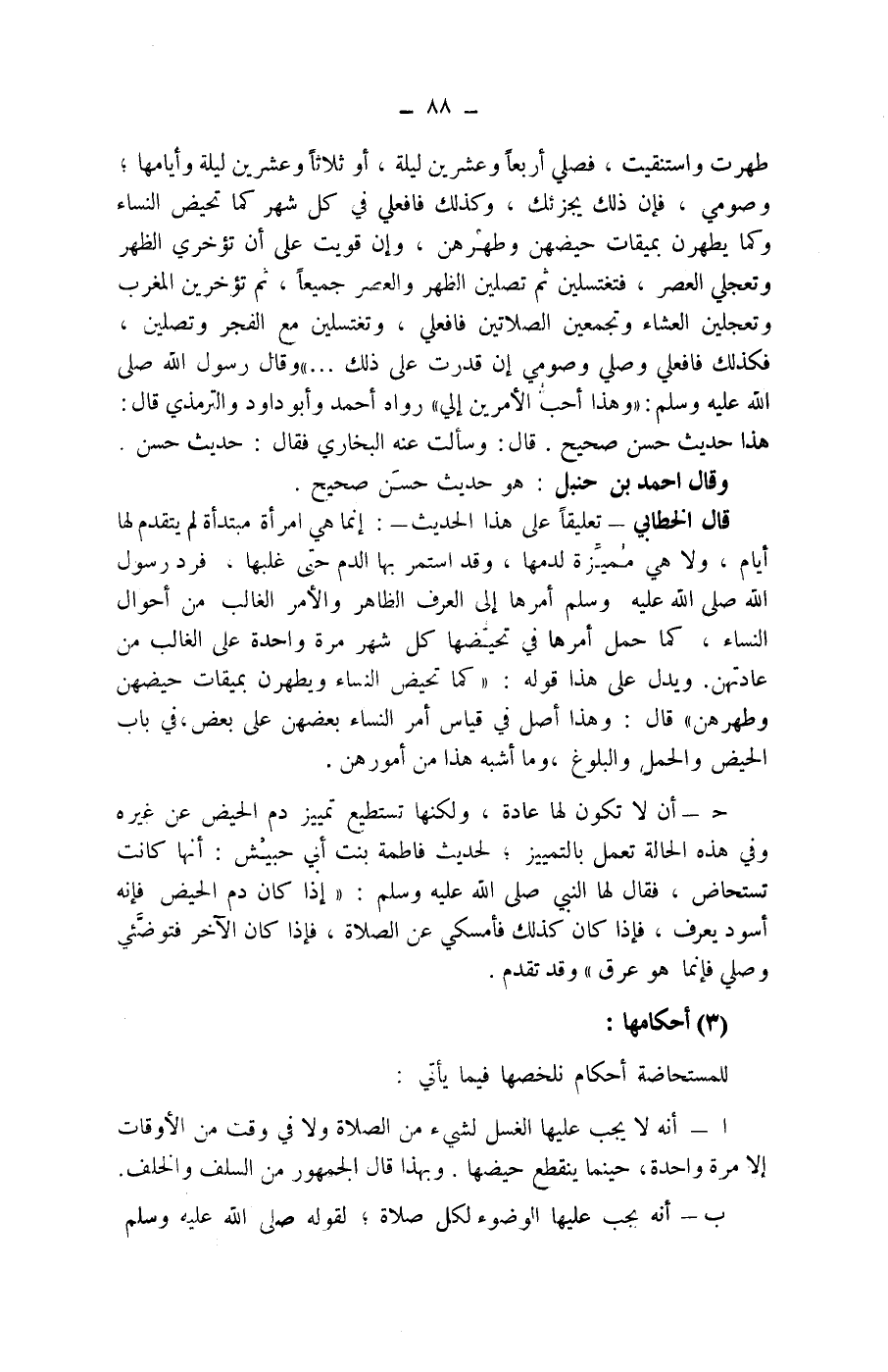 (3) أحكامها: للمستحاضة أحكام نلخصها فيما يأتي: