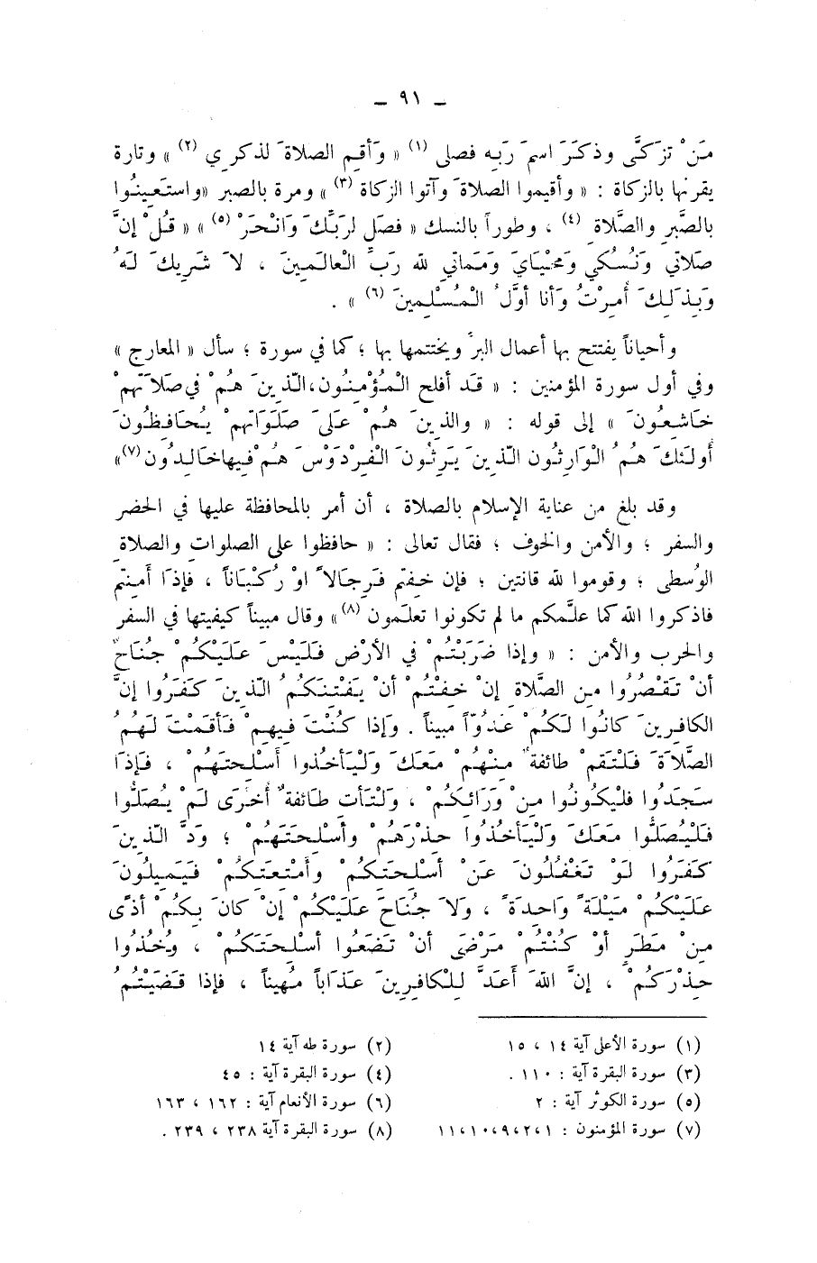 (6) سورة الانعام آية: 162، 163 (7) سورة المؤمنون: 1، 2، 9، 10، 11.