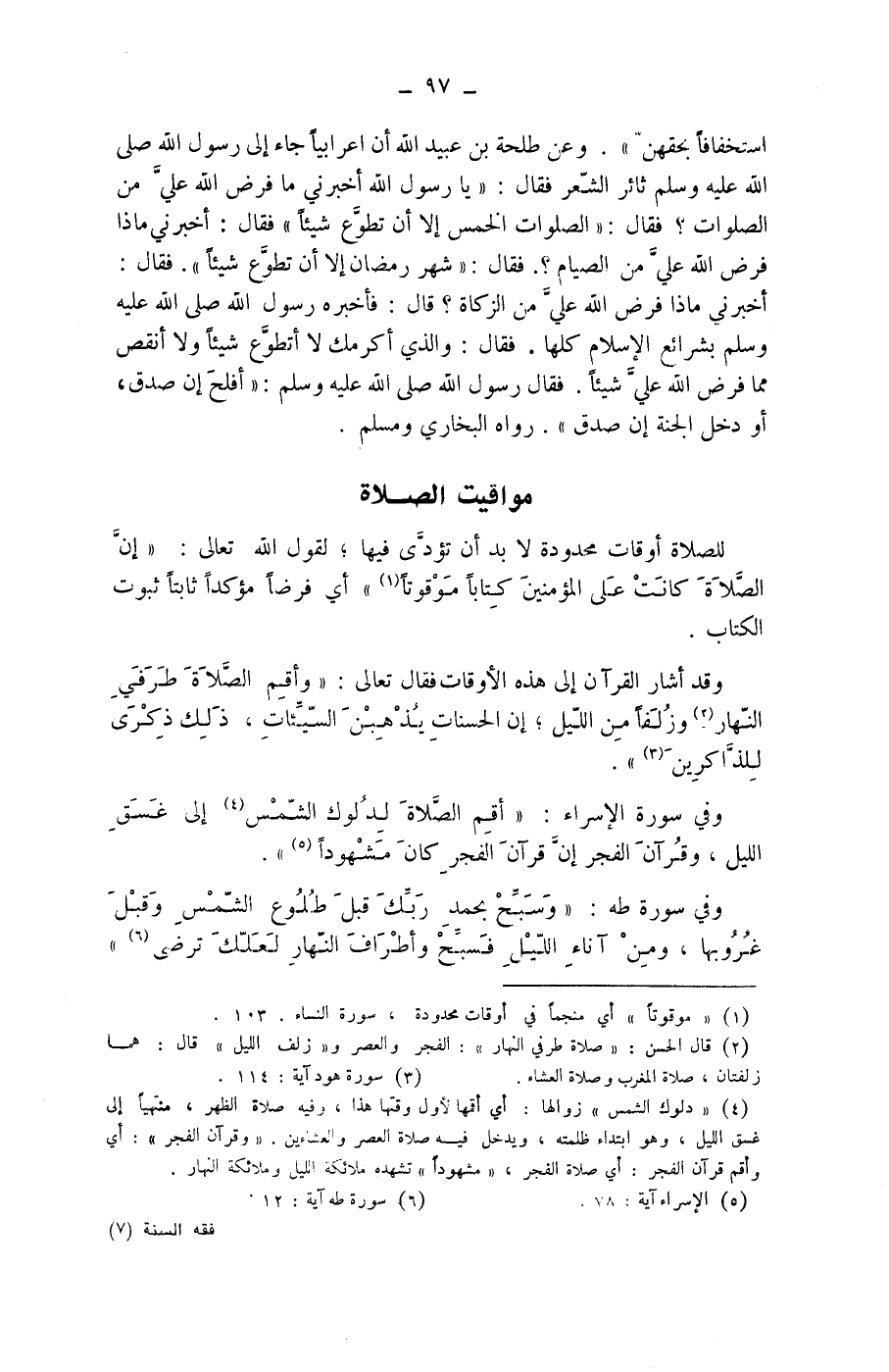وعن طلحة بن عبيد الله أن اعرابيا جاء إلى رسول الله صلى الله عليه وسلم ثائر الشعر فقال: (يا رسول الله أخبرني ما فرض الله علي من الصلوات؟ فقال: (الصلوات الخمس إلا أن تطوع شيئا) فقال: أخبرني ماذا فرض الله علي من الصيام؟.