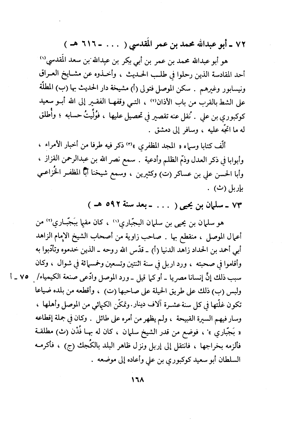 72- أَبُو عَبْدِ اللَّهِ مُحَمَّدُ بْنُ عُمَرَ الْمَقْدِسِيُّ ( ... - 616 هـ)