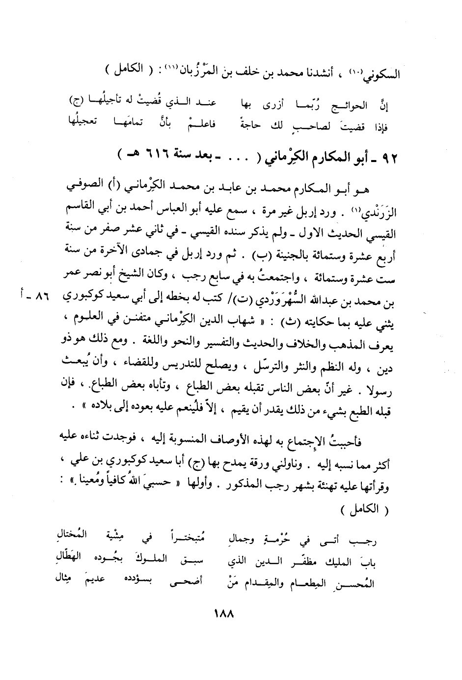 92- أَبُو الْمَكَارِمِ الْكِرْمَانِيُّ ( ... - بَعْدَ سَنَةِ 616 هـ)