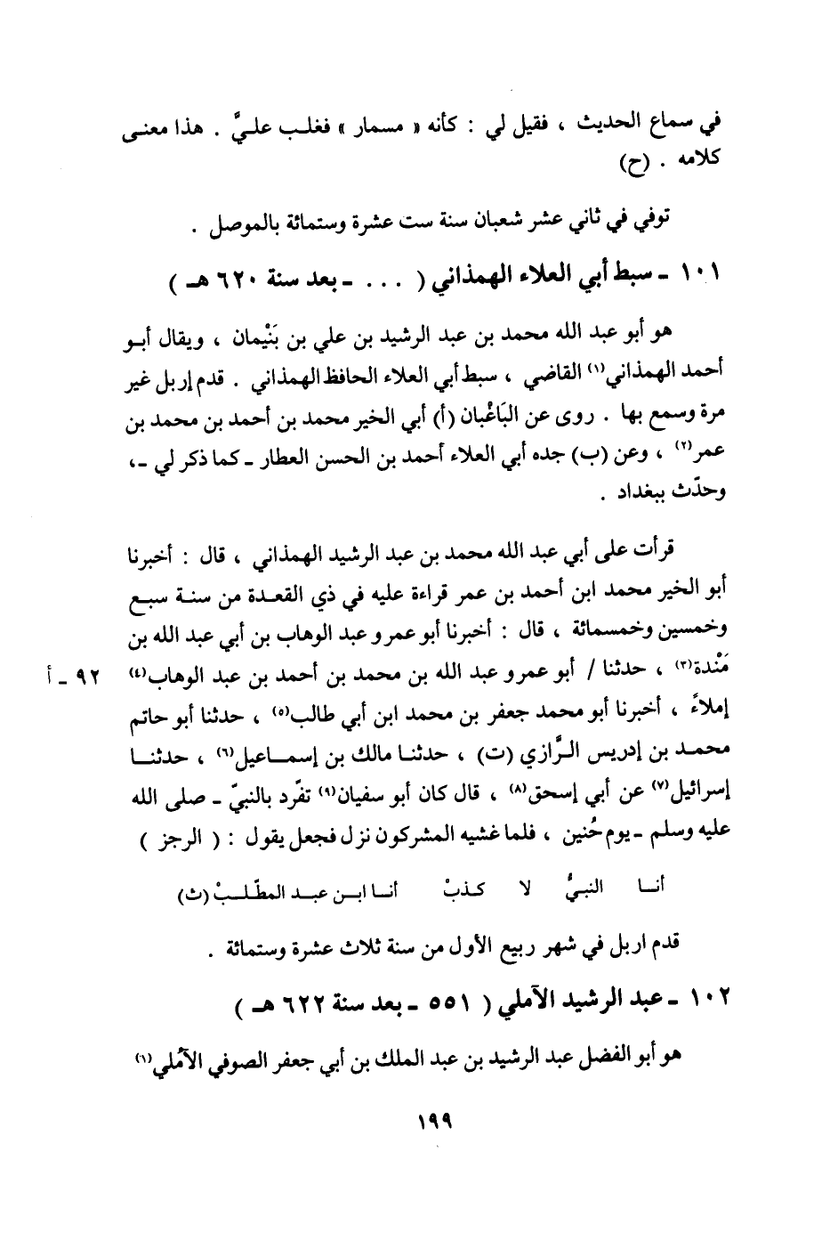 101- سِبْطُ أَبِي الْعَلَاءِ الْهَمَذَانِيُّ ( ... - بعد سنة 620 هـ)