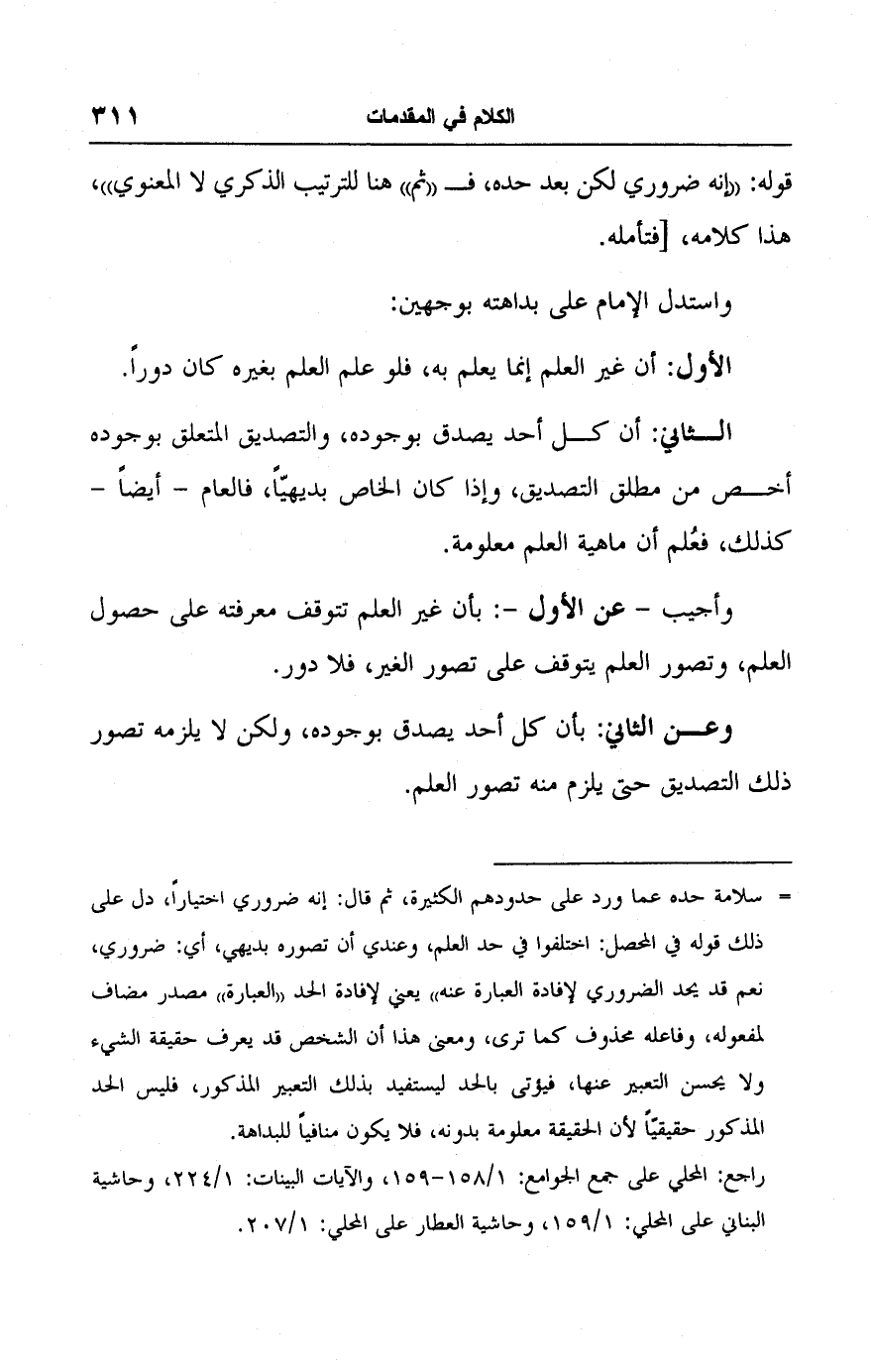 قوله: "إنه ضروري لكن بعد حده، فـ "ثم" هنا للترتيب الذكري لا المعنوي"، هذا كلامه، [فتأمله.