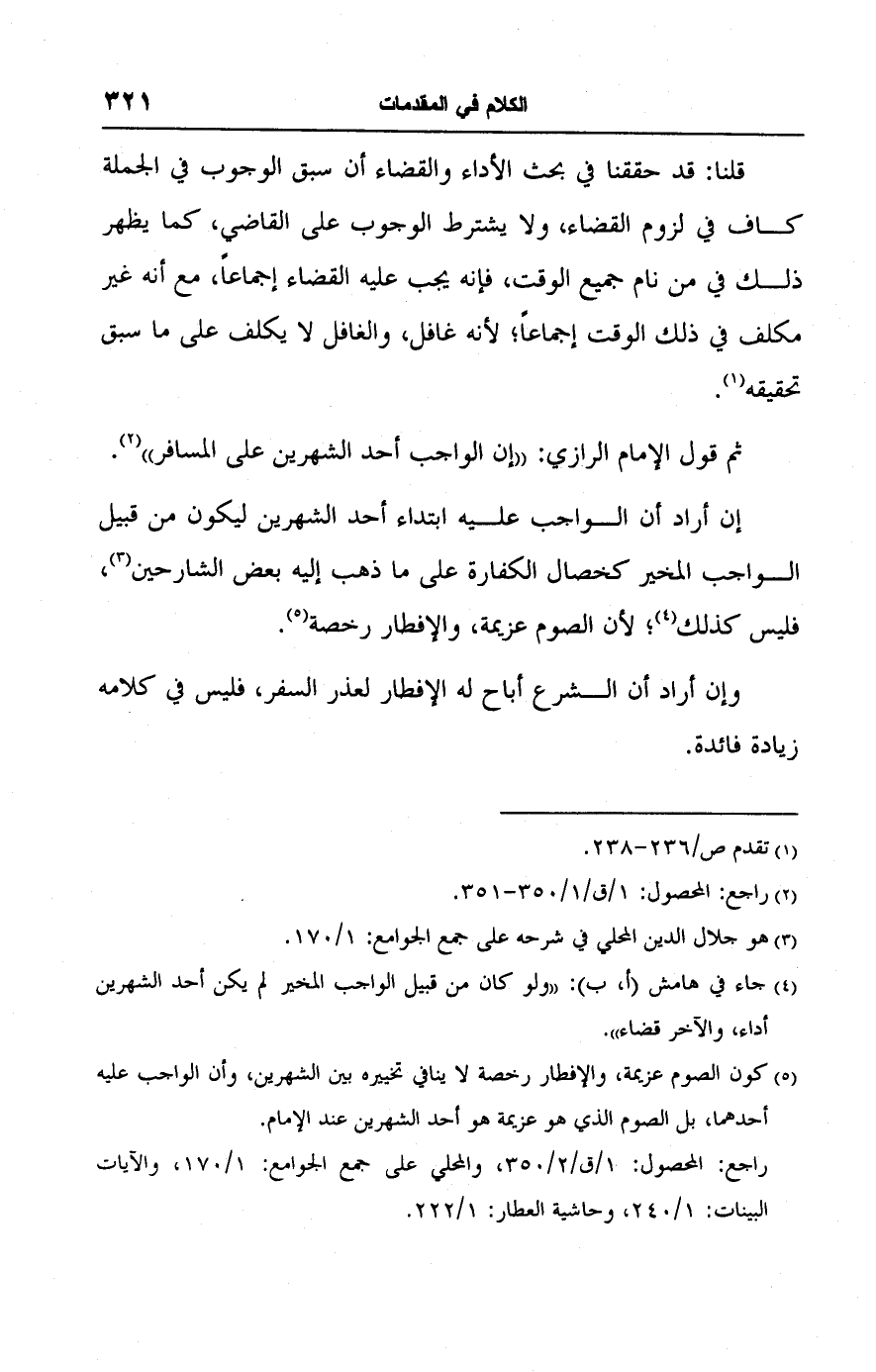راجع: المحصول: ١/ ق /٢/ ٣٥٠، والمحلى على جمع الجوامع: ١/ ١٧٠، والآيات البينات: ١/ ٢٤٠، وحاشية العطار: ١/ ٢٢٢.