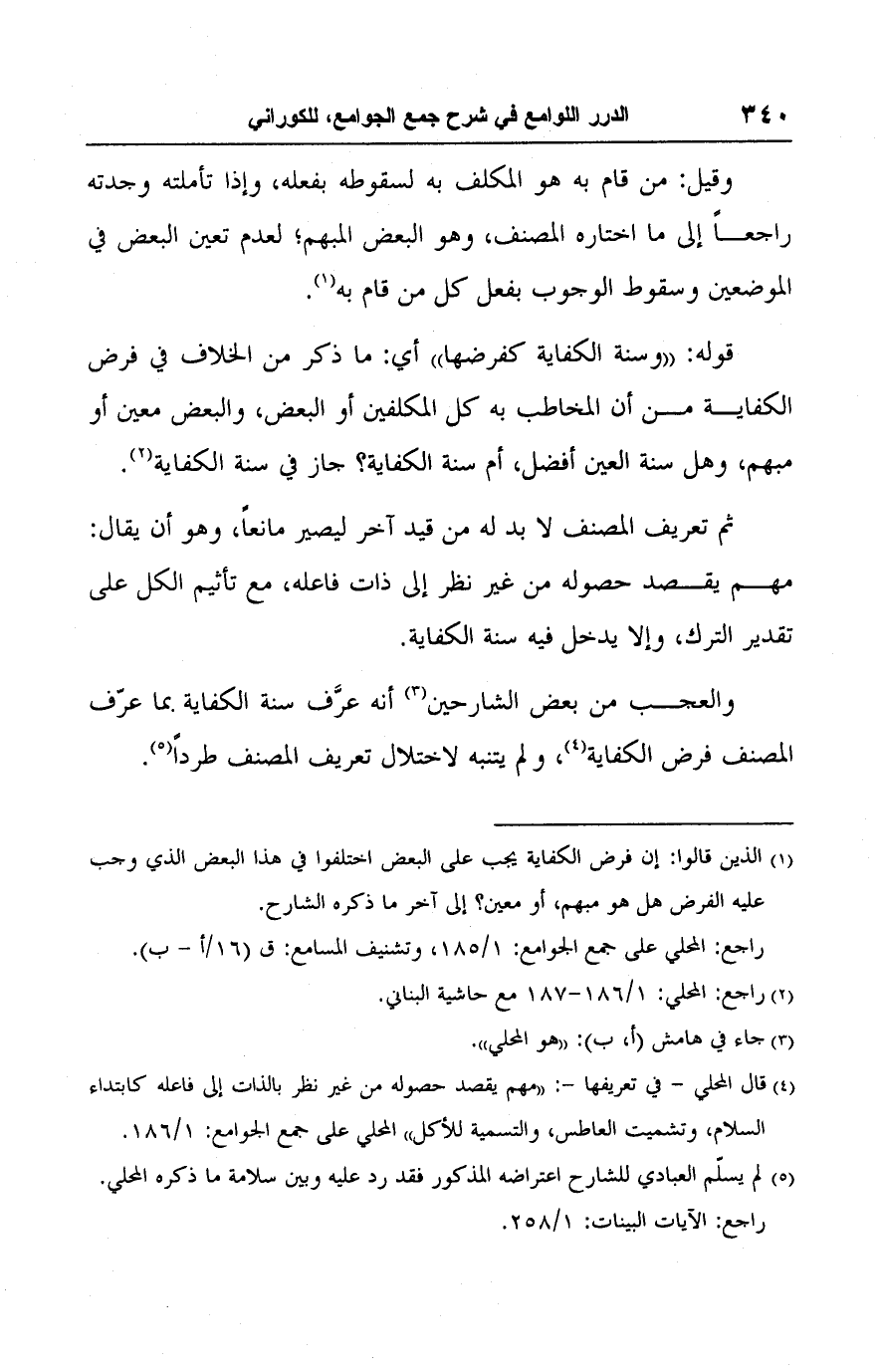 والعجب من بعض الشارحين (٣) أنه عرَّف سنة الكفاية بما عرّف المصنف فرض الكفاية (٤)، ولم يتنبه لاختلال تعريف المصنف طردًا (٥).