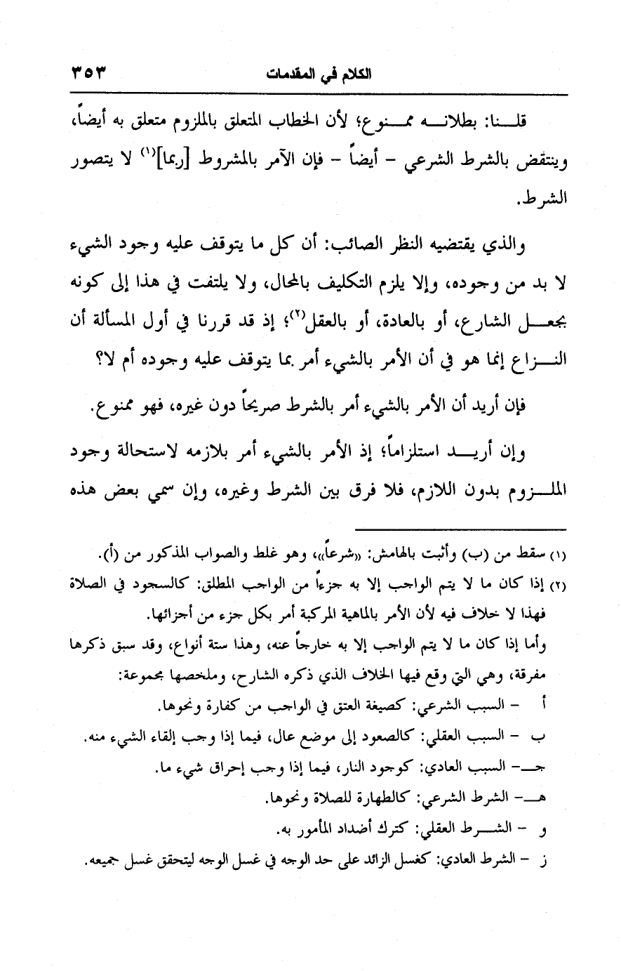 وإن أريد استلزامًا؛ إذ الأمر بالشيء أمر بلازمه لاستحالة وجود الملزوم بدون اللازم، فلا فرق بين الشرط وغيره، وإن سمي بعض هذه