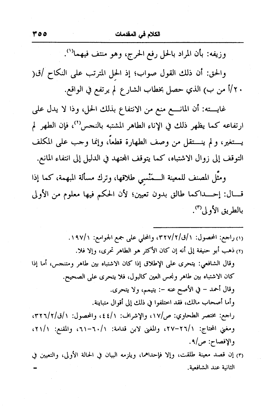 (١) راجع: المحصول: ١ / ق / ٢/ ٣٢٧، والمحلي على جمع الجوامع: ١/ ١٩٧.