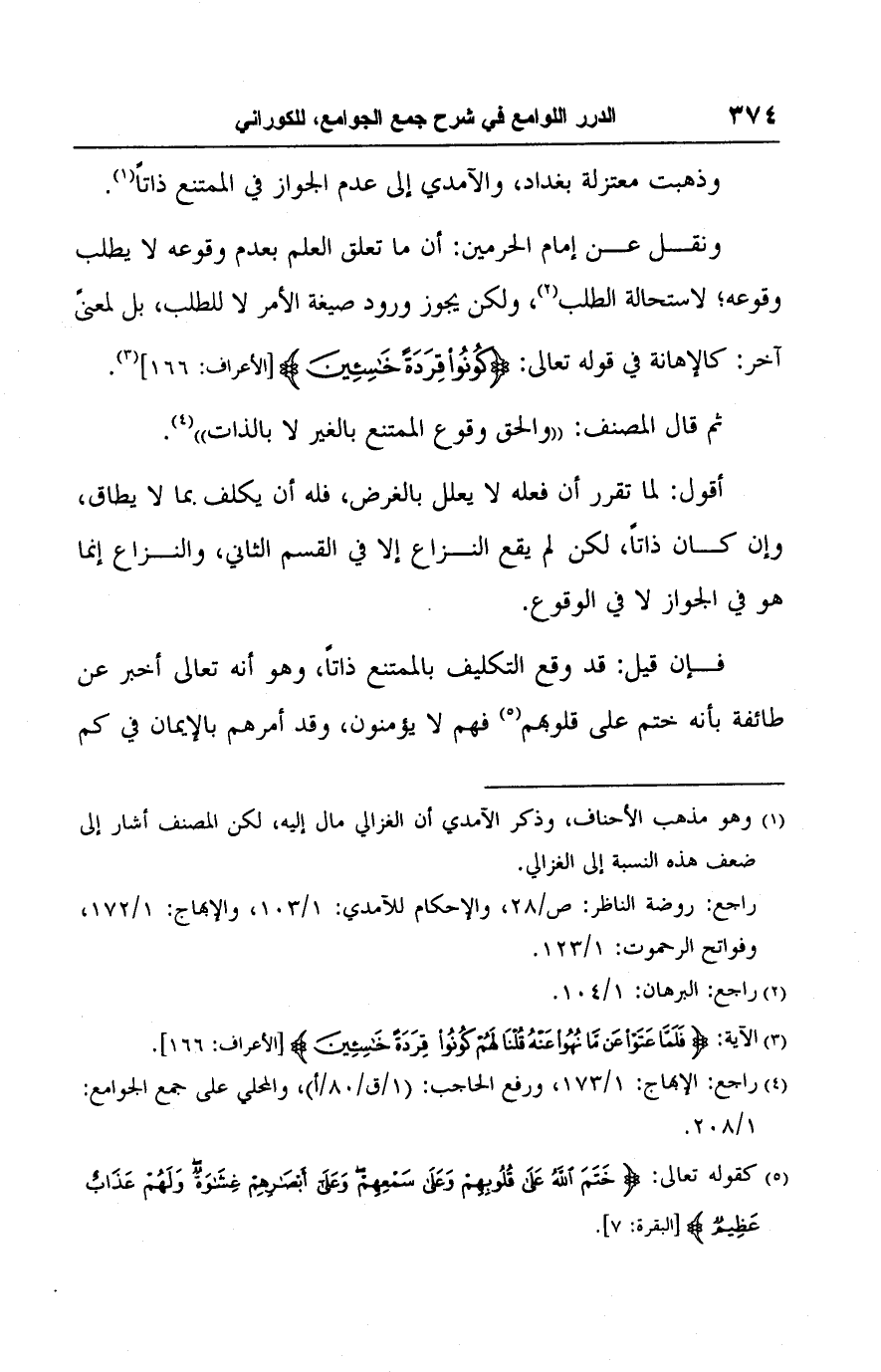(٤) راجع: الإبهاج: ١/ ١٧٣، ورفع الحاجب: (١/ ق / ٨٠/ أ)، والمحلي على جمع الجوامع: ١/ ٢٠٨.