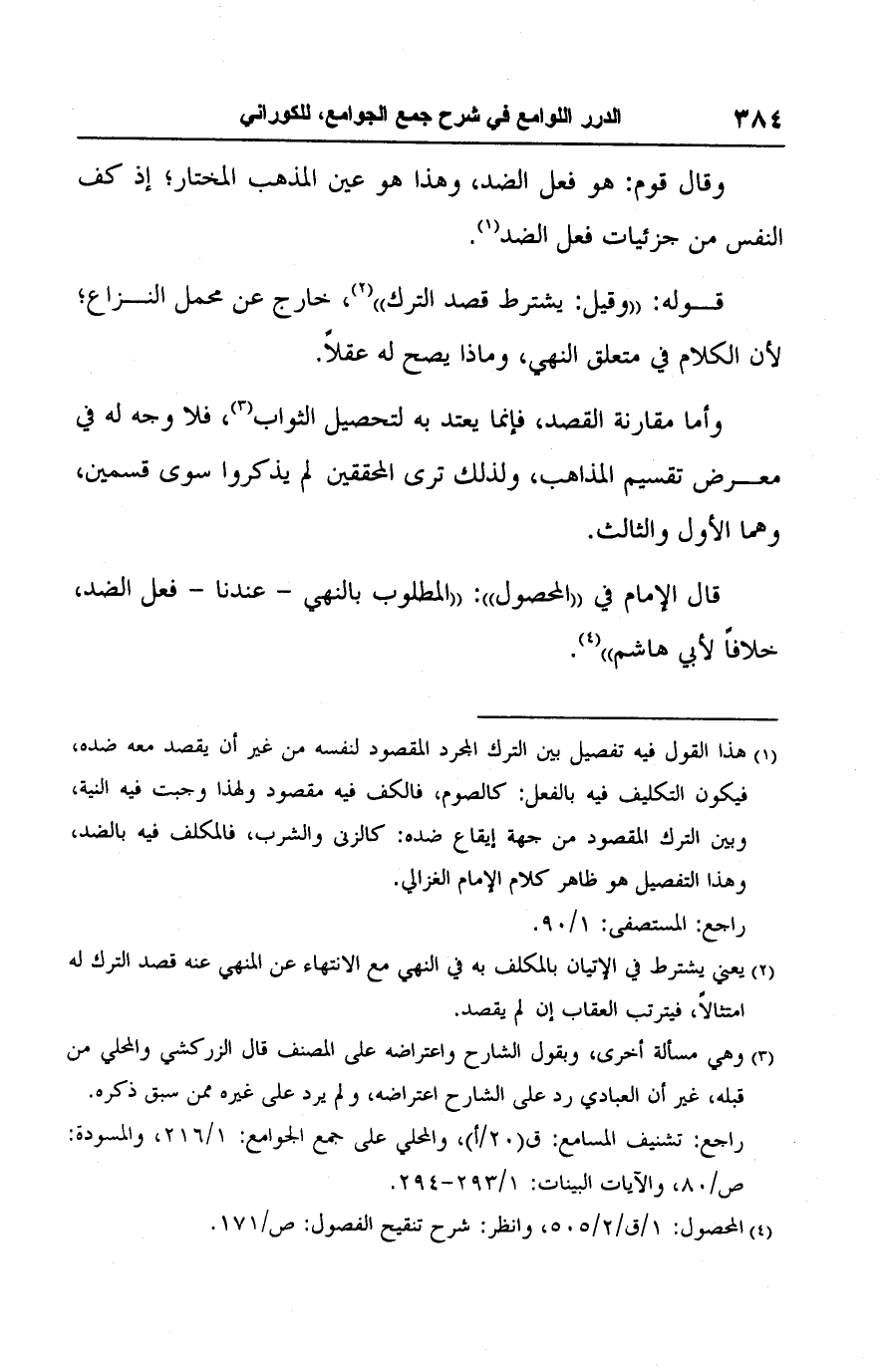 قال الإمام في "المحصول": "المطلوب بالنهي -عندنا- فعل الضد، خلافًا لأبي هاشم" (٤).