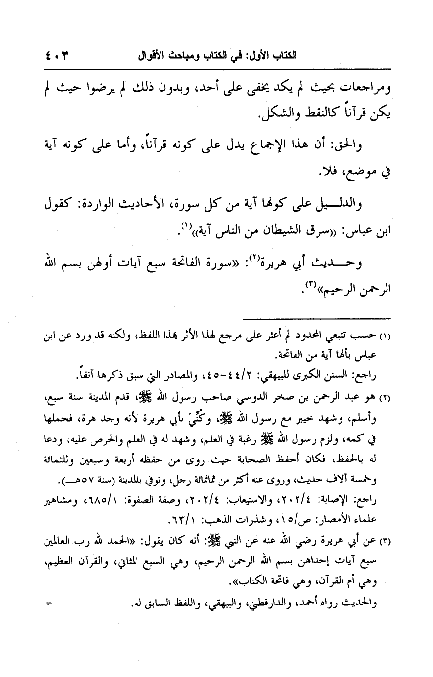 (١) حسب تتبعي المحدود لم أعثر على مرجع لهذا الأثر بهذا اللفظ، ولكنه قد ورد عن ابن عباس بأنها آية من الفاتحة.
