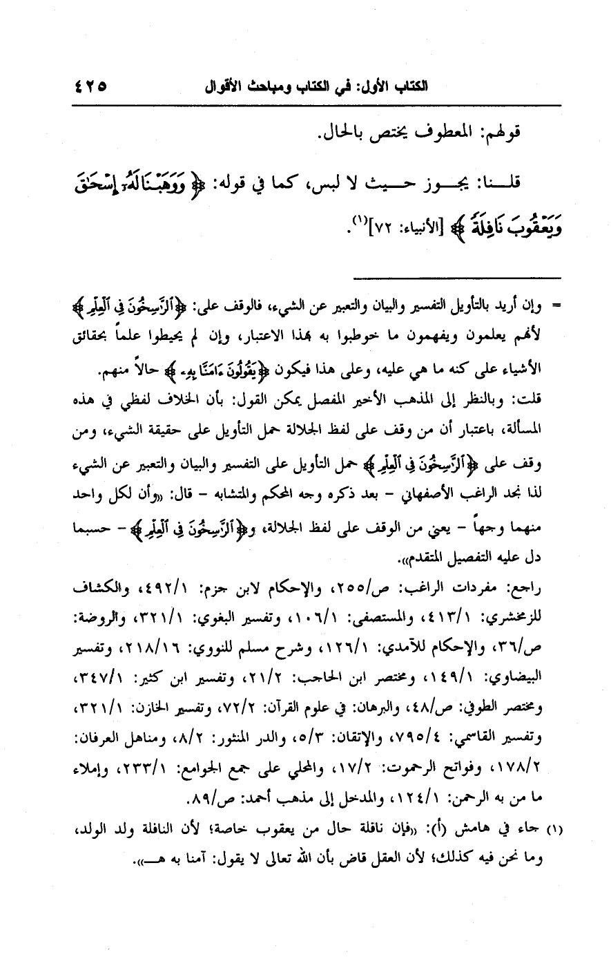 (١) جاء في هامش (أ): "فإن نافلة حال من يعقوب خاصة؛ لأن النافلة ولد الولد، وما نحن فيه كذلك؛ لأن العقل قاض بأن الله تعالى لا يقول: آمنا به هـ".