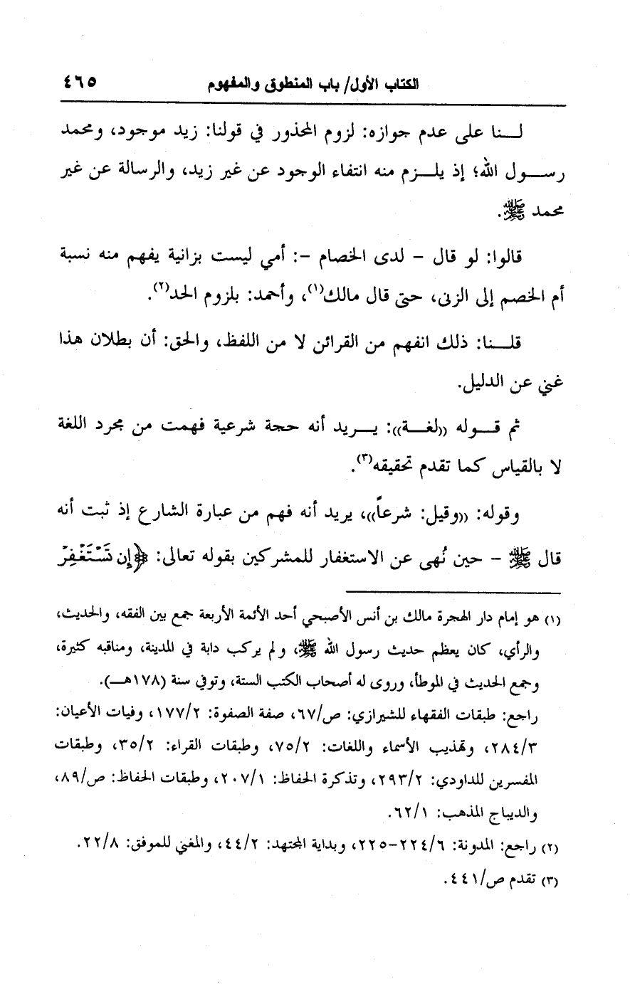 (١) هو إمام دار الهجرة مالك بن أنس الأصبحي أحد الأئمة الأربعة جمع بين الفقه، والحديث، والرأى، كان يعظم حديث رسول الله -صلى الله عليه وسلم-، ولم يركب دابة في المدينة، ومناقبه كثيرة، وجمع الحديث في الموطأ، وروى له أصحاب الكمب الستة، وتوفي سنة (١٧٨ هـ).