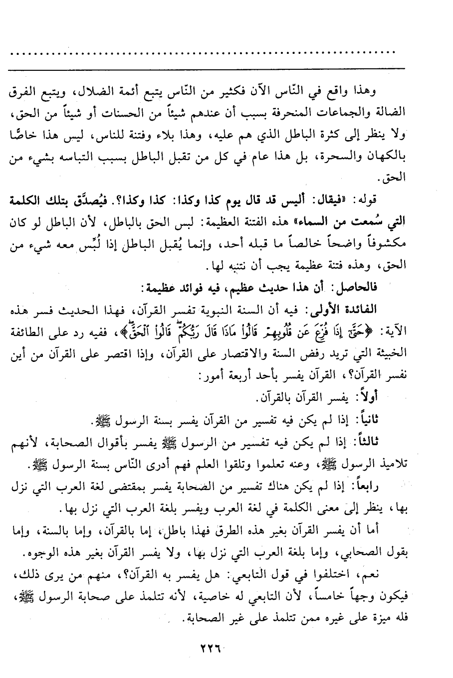 أما أن يفسر القرآن بغير هذه الطرق فهذا باطل، إما بالقرآن، وإما بالسنّة، وإما بقول الصحابي، وإما بلغة العرب التي نزل بها، ولا يفسر القرآن بغير هذه الوجوه.
