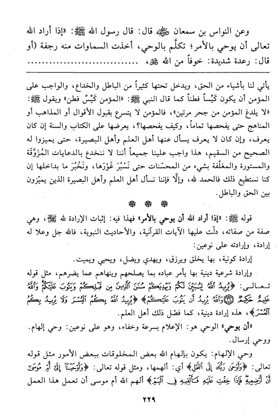 قوله صَلَّى اللَّهُ عَلَيْهِ وَسَلَّمَ: "إذا أراد الله أن يوحي بالأمر" فهذا فيه: إثبات الإرادة لله سبحانه وتعالى، وهي صفة من صفاته، دلّت عليها الآيات القرآنية، والأحاديث النبوية، فالله جل وعلا له إرادة، وإرادته على نوعين: