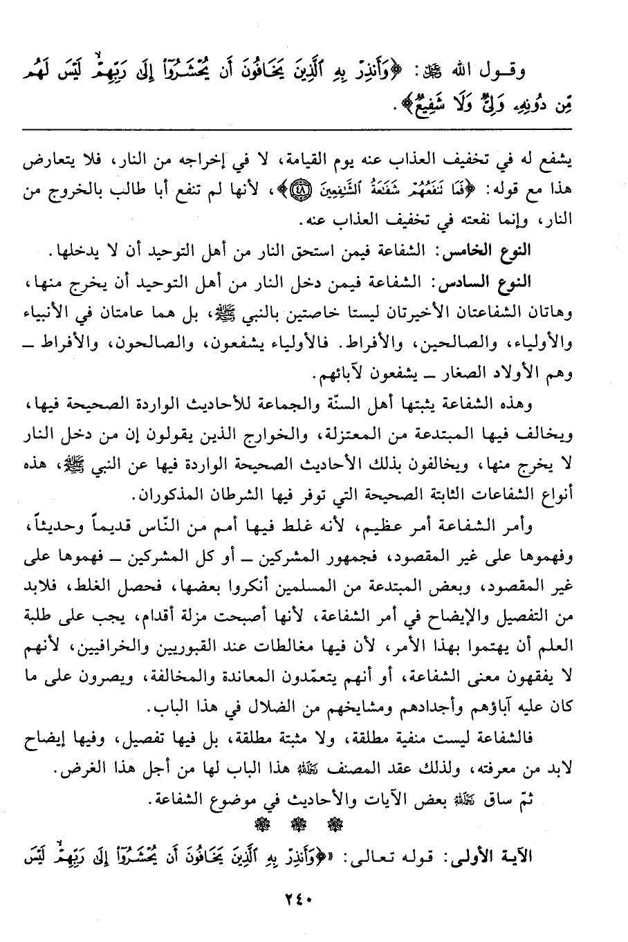 ثمّ ساق رحمه الله بعض الآيات والأحاديث في موضوع الشفاعة.