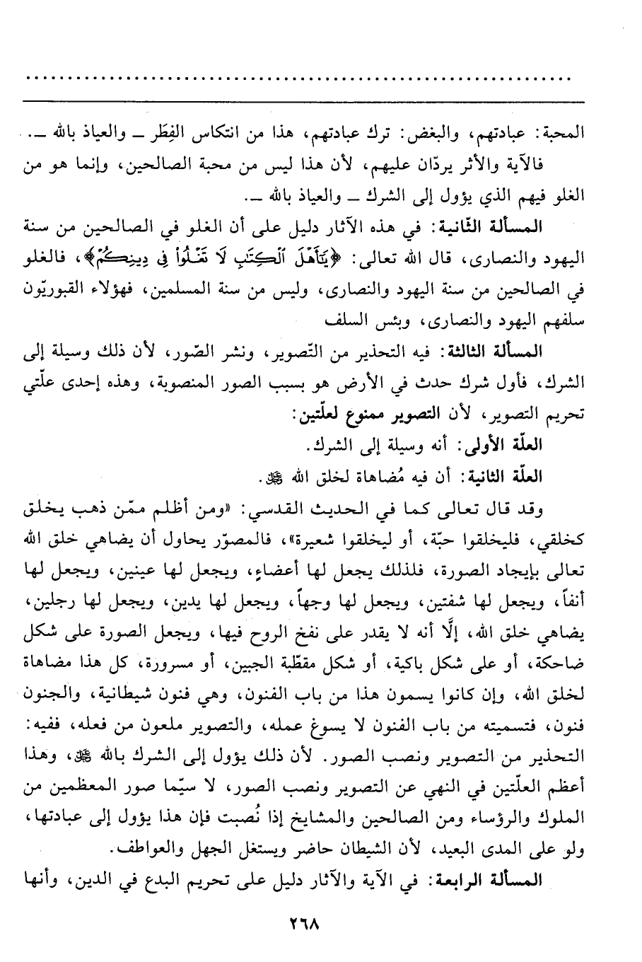 المسألة الثانية: في هذه الآثار دليل على أن الغلو في الصالحين من سنّة اليهود والنصارى، قال الله تعالى: {يَا أَهْلَ الْكِتَابِ لا تَغْلُوا فِي دِينِكُمْ} ، فالغلو في الصالحين من سنة اليهود والنصارى، وليس من سنة المسلمين، فهؤلاء القبوريون سلفهم اليهود والنصارى، وبئس السلف.