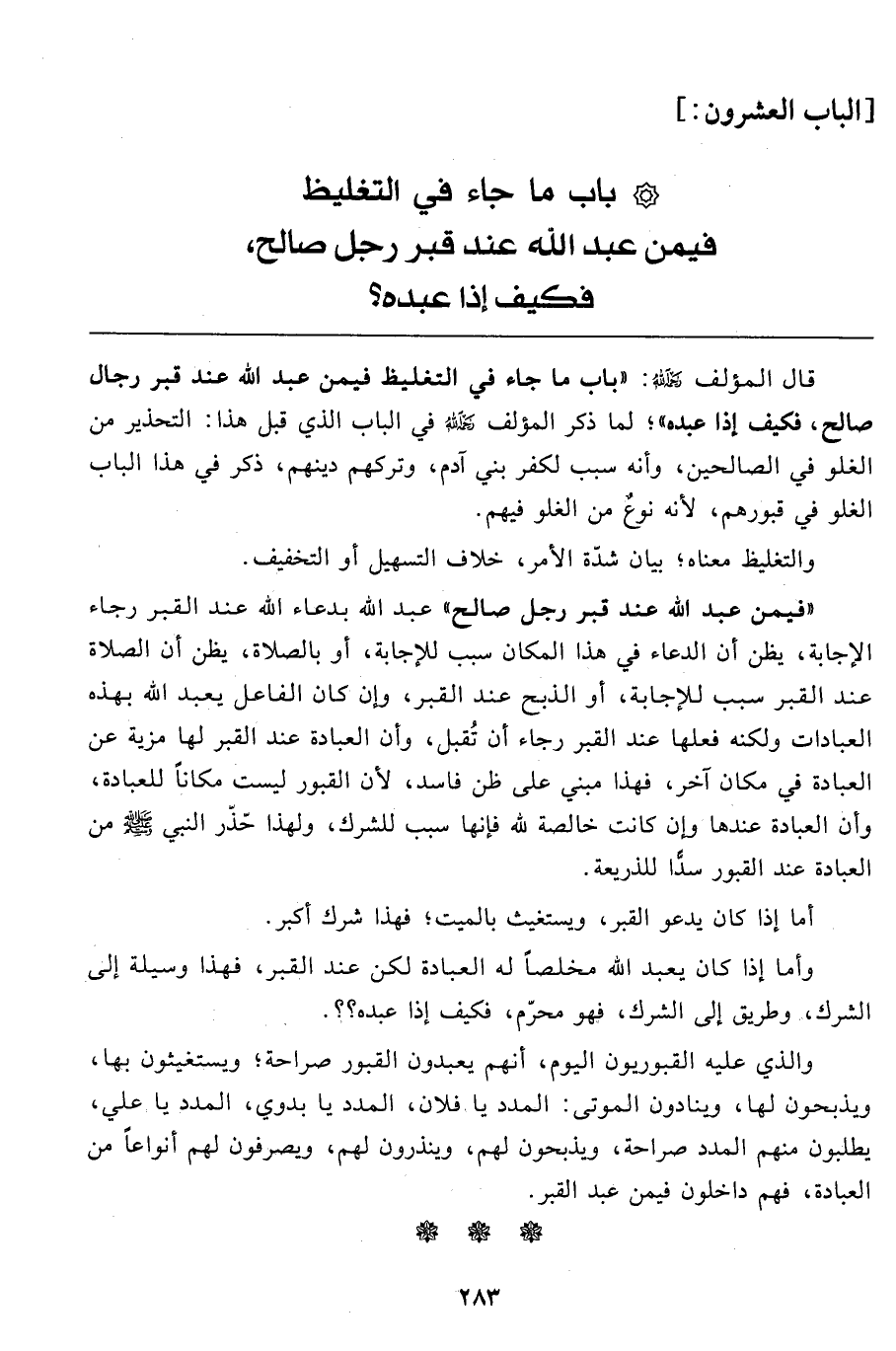 باب ما جاء في التغليظ فيمن عبد الله عند قبر رجل صالح، فكيف إذا عبده؟