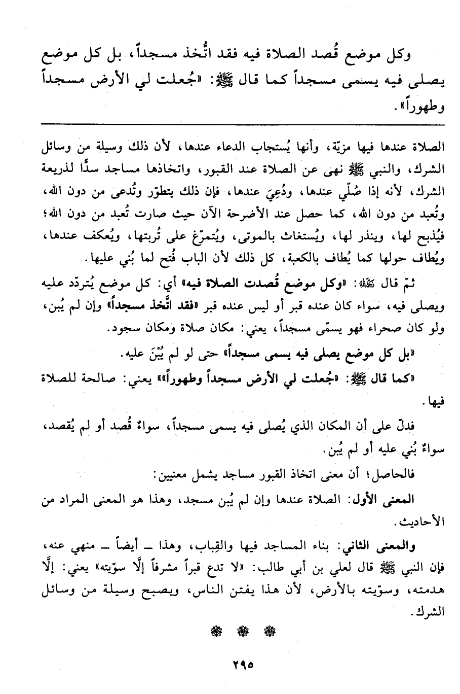 "كما قال صَلَّى اللَّهُ عَلَيْهِ وَسَلَّمَ: "جُعلت لي الأرض مسجداً وطهوراً" يعني: صالحة للصلاة فيها.