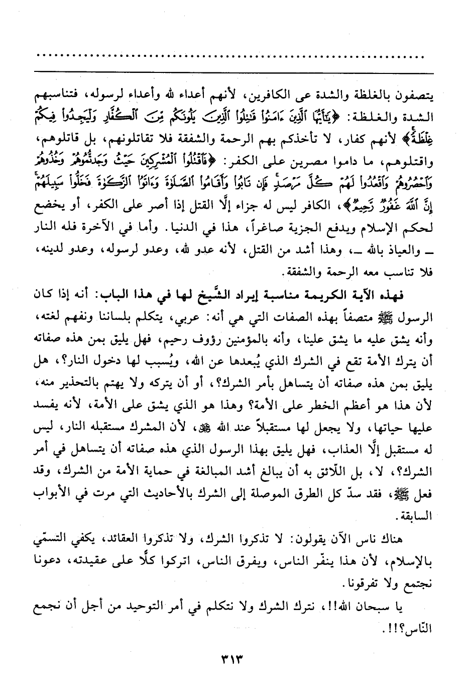يا سبحان الله، نترك الشرك ولا نتكلم في أمر التّوحيد من أجل أن نجمع الناس؟!!.