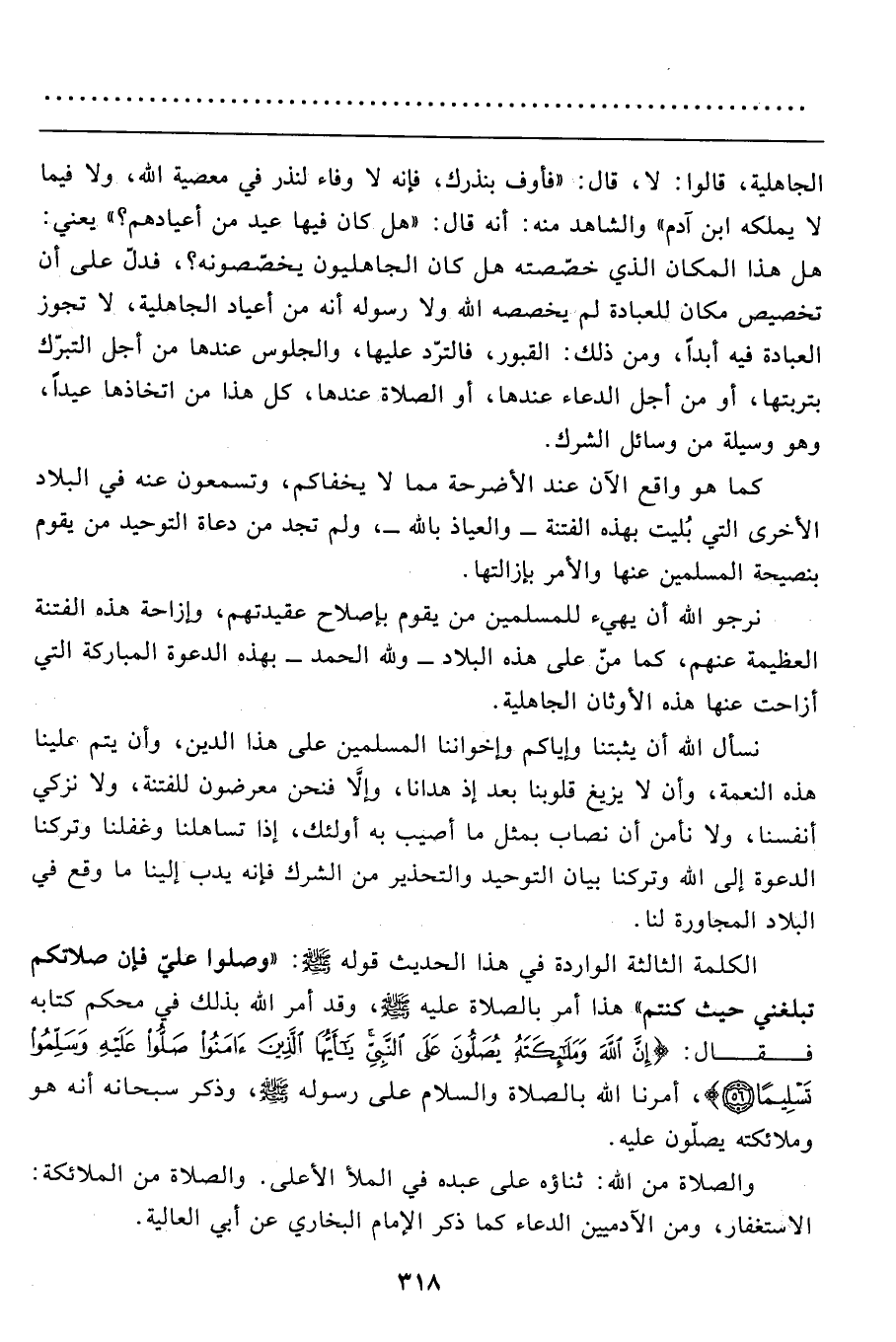 نرجو الله أن يهيء للمسلمين من يقوم بإصلاح عقيدتهم، وإزاحة هذه الفتنة العظيمة عنهم، كما منّ على هذه البلاد- ولله الحمد- بهذه الدعوة المباركة التي أزاحت عنها هذه الأوثان الجاهلية.