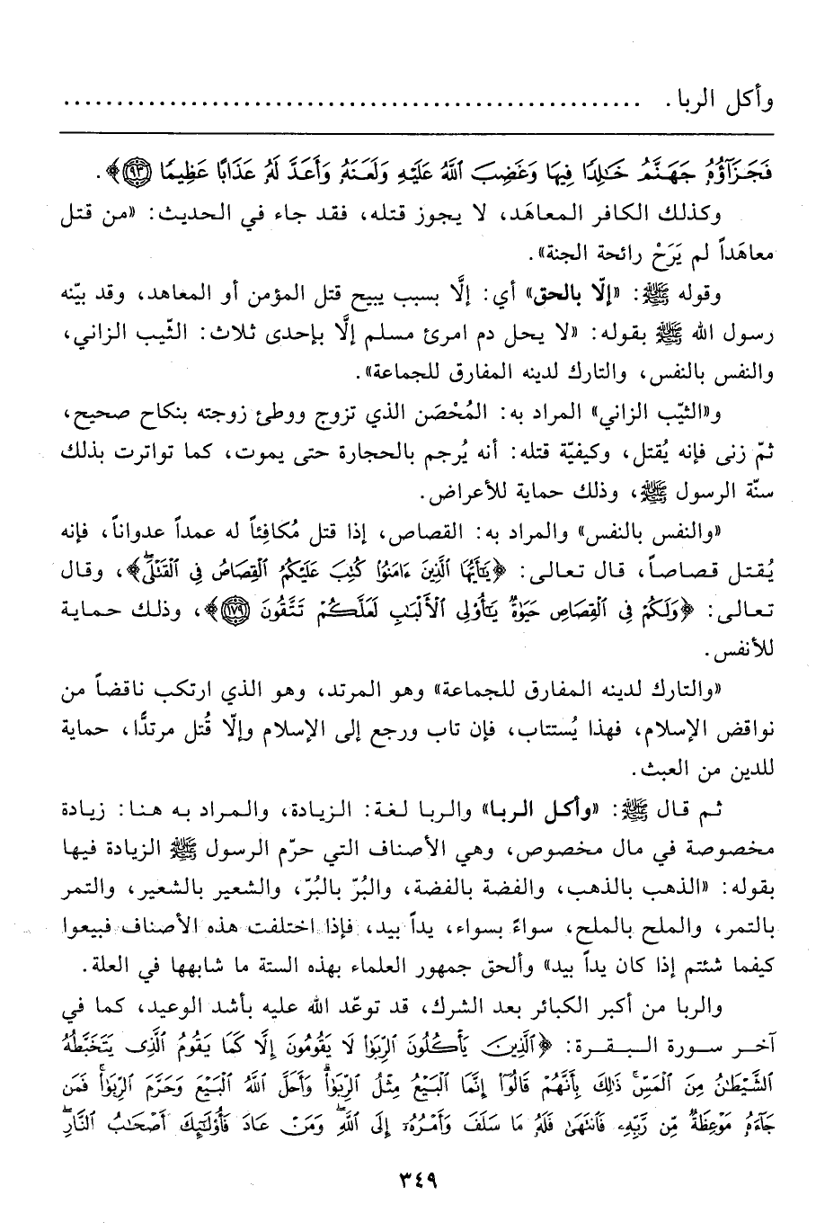 والربا من أكبر الكبائر بعد الشرك، قد توعّد الله عليه بأشد الوعيد، كما في آخر سورة البقرة: {الَّذِينَ يَأْكُلُونَ الرِّبا لا يَقُومُونَ إِلَّا كَمَا يَقُومُ الَّذِي يَتَخَبَّطُهُ الشَّيْطَانُ مِنَ الْمَسِّ ذَلِكَ بِأَنَّهُمْ قَالُوا إِنَّمَا الْبَيْعُ مِثْلُ الرِّبا وَأَحَلَّ اللهُ الْبَيْعَ وَحَرَّمَ الرِّبا فَمَنْ جَاءَهُ مَوْعِظَةٌ مِنْ رَبِّهِ فَانْتَهَى فَلَهُ مَا سَلَفَ وَأَمْرُهُ إِلَى اللهِ وَمَنْ عَادَ فَأُولَئِكَ أَصْحَابُ النَّارِ