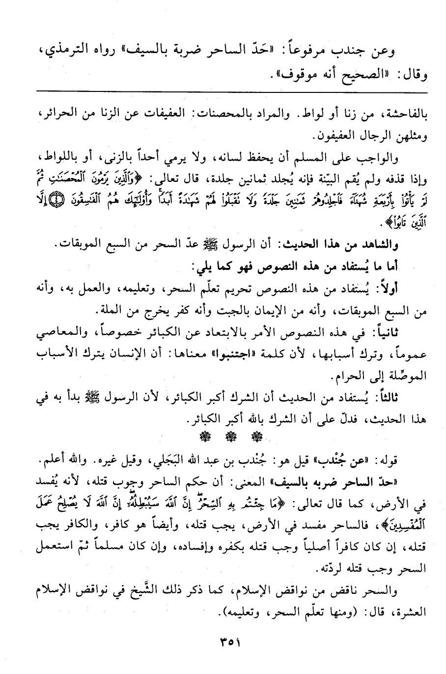 والسحر ناقض من نواقض الإسلام، كما ذكر ذلك الشَّيخ في نواقض الإسلام العشرة، قال: "ومنها تعلّم السحر، وتعليمه".