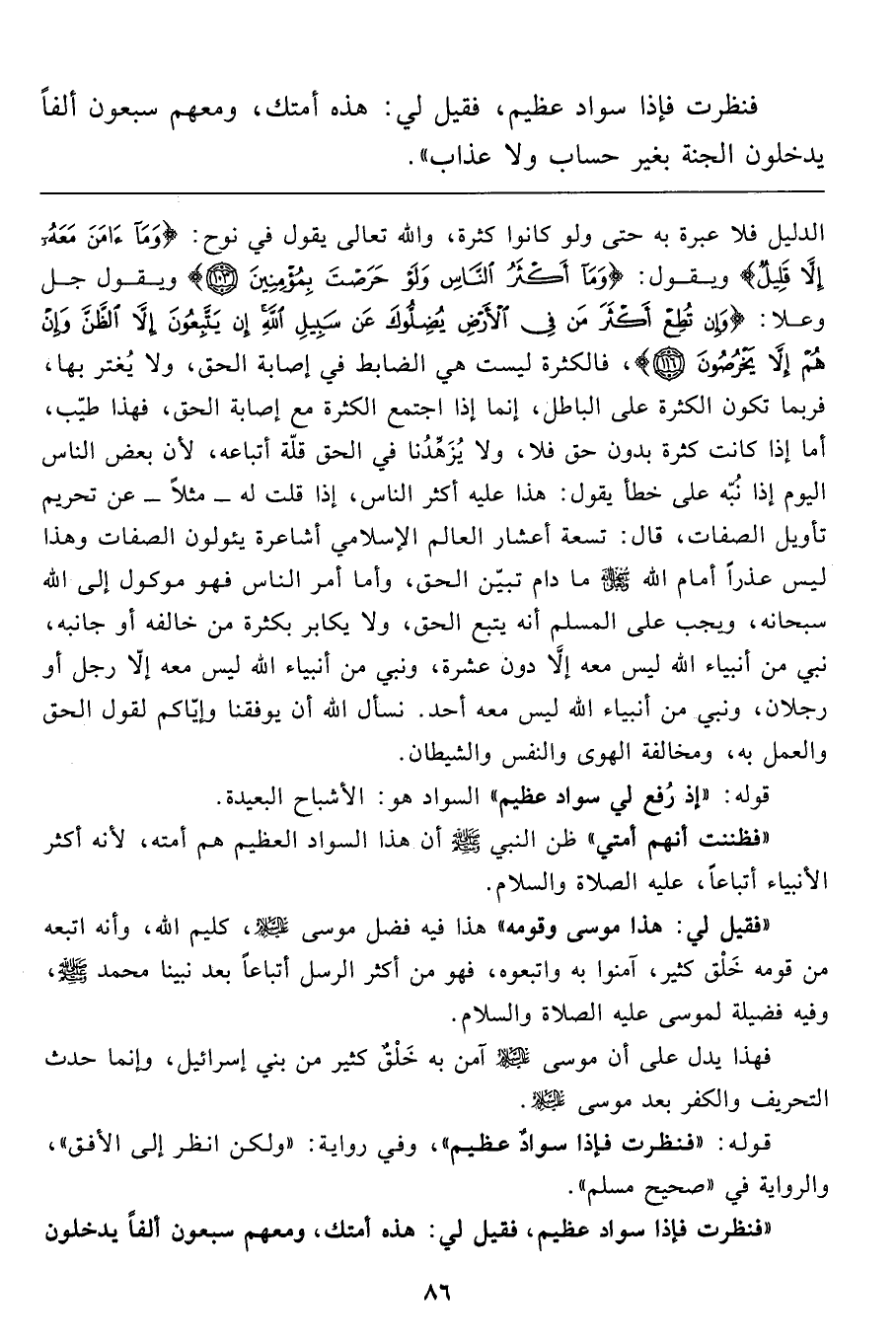 "فنظرت فإذا سوادٌ عظيم، فقيل لي: هده أمتك، ومعهم سبعون ألفاً يدخلون