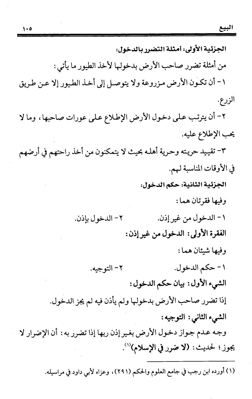 وجه عدم جواز دخول الأرض بغير إذن ريها إذا تضرر به: أن الإضرار لا يجوز؛ لحديث: (لا ضرر في الإسلام) (¬1).