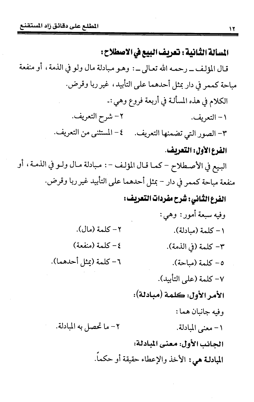 كتاب المطلع على دقائق زاد المستقنع «المعاملات المالية» (اسم الجزء: 1)