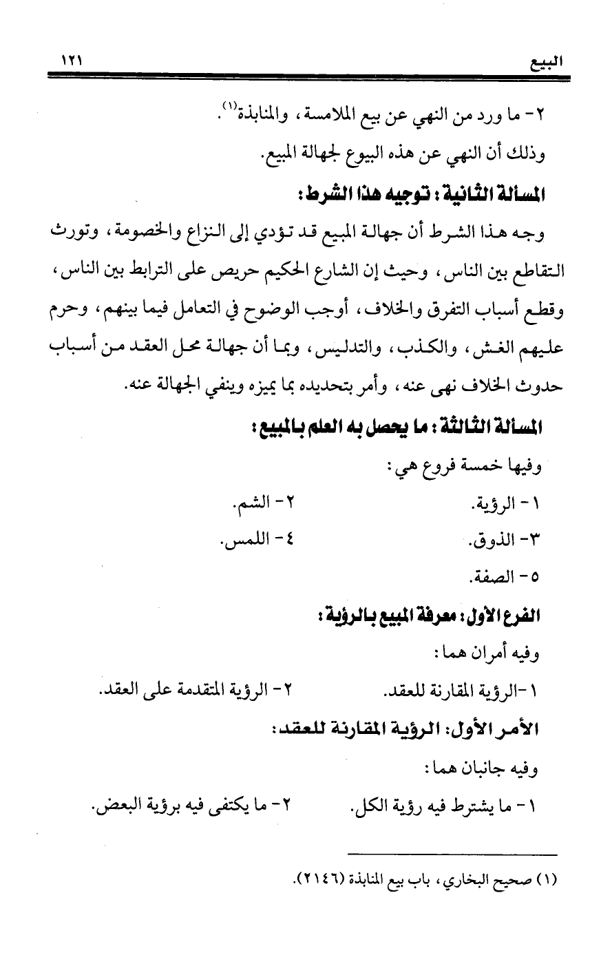 الفرع الأول: معرفة المبيع بالرؤبة: