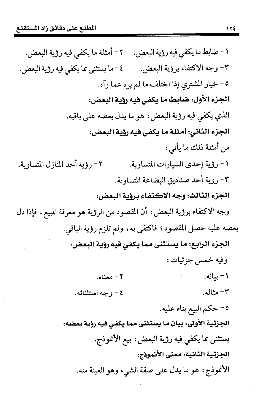الجزء الرابع: ما يستثنى مما يكفي فيه رؤية البعض: