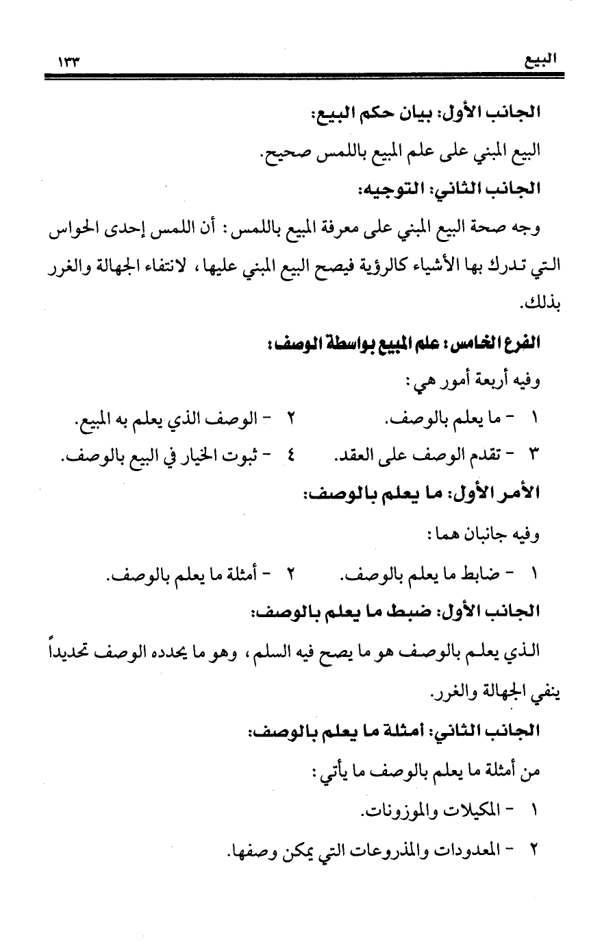 الفرع الخامس: علم المبيع بواسطة الوصف: