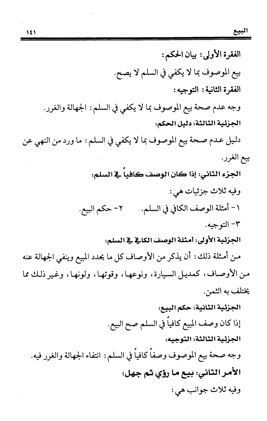 إذا كان وصف المبيع كافياً في السلم صح البيع.