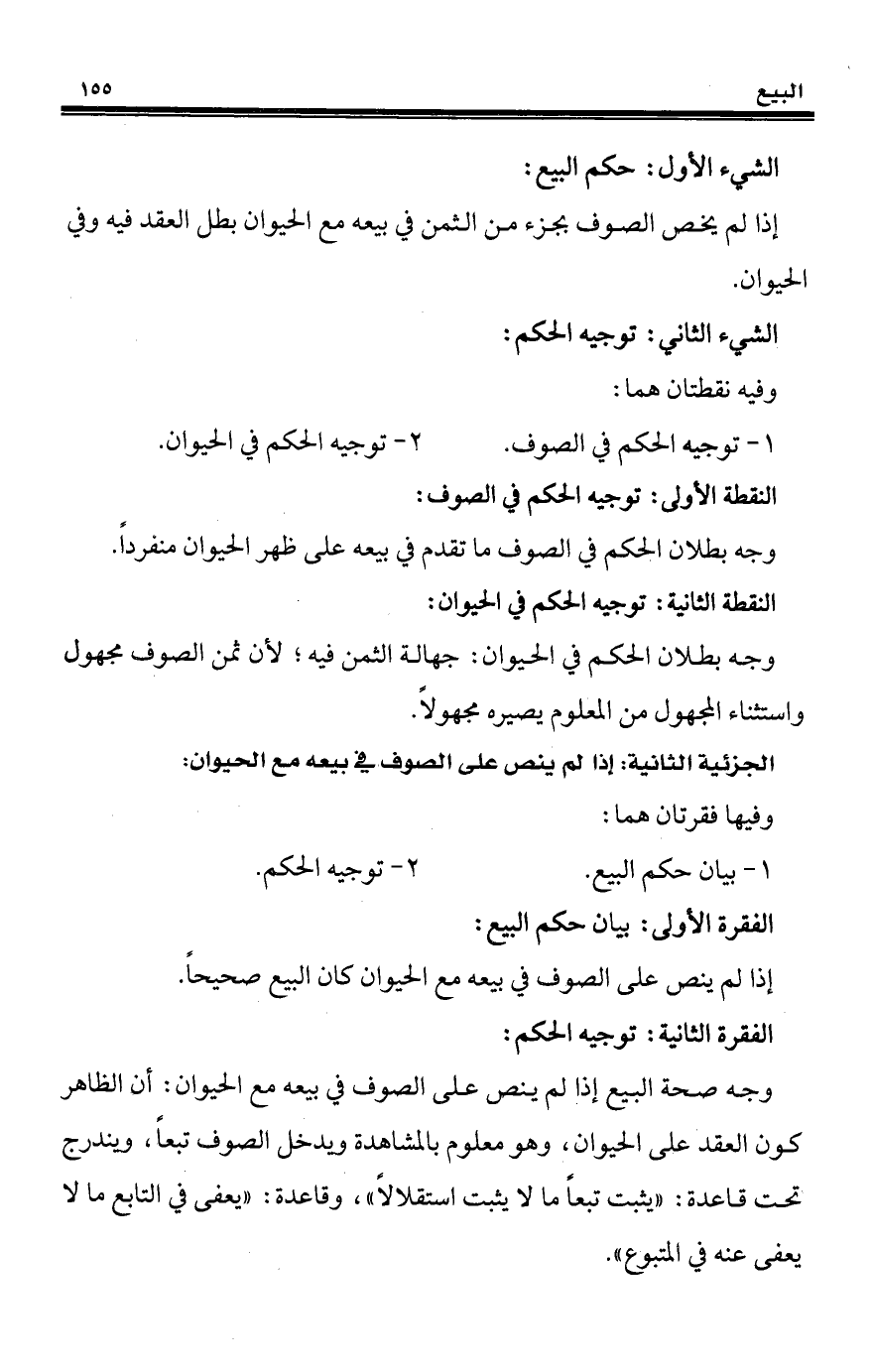وجه صحة البيع إذا لم ينص على الصوف في بيعه مع الحيوان: أن الظاهر كون العقد على الحيوان، وهو معلوم بالمشاهدة ويدخل الصوف تبعًا، ويندرج تحت قاعدة: "يثبت تبعًا ما لا يثبت استقلالًا"، وقاعدة: "يعفى في التابع ما لا يعفى عنه في المتبوع".