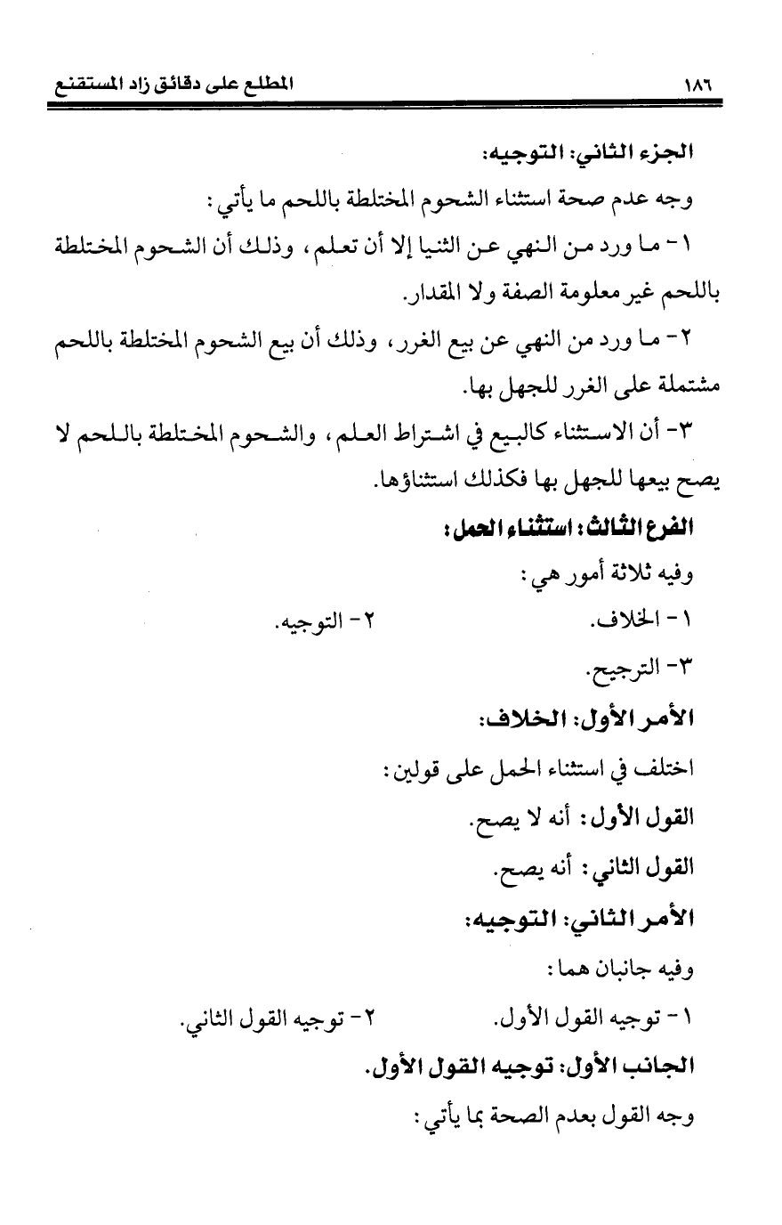 1 - ما ورد من النهي عن الثنيا إلا أن تعلم، وذلك أن الشحوم المختلطة باللحم غير معلومة الصفة ولا المقدار.